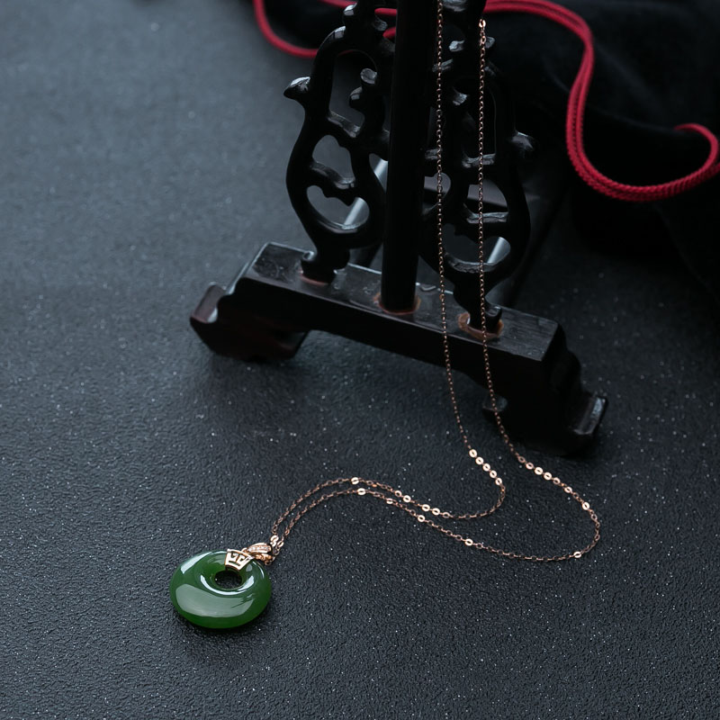• [名  称] 18K山料和田碧玉鱼眼扣项链