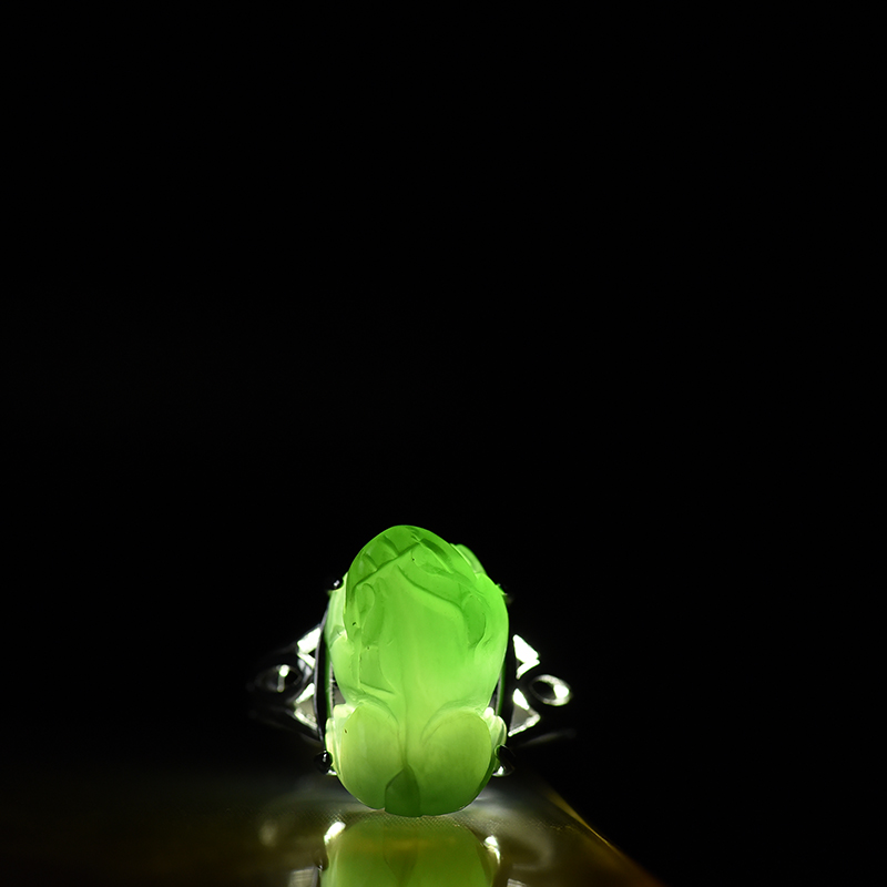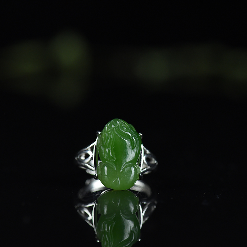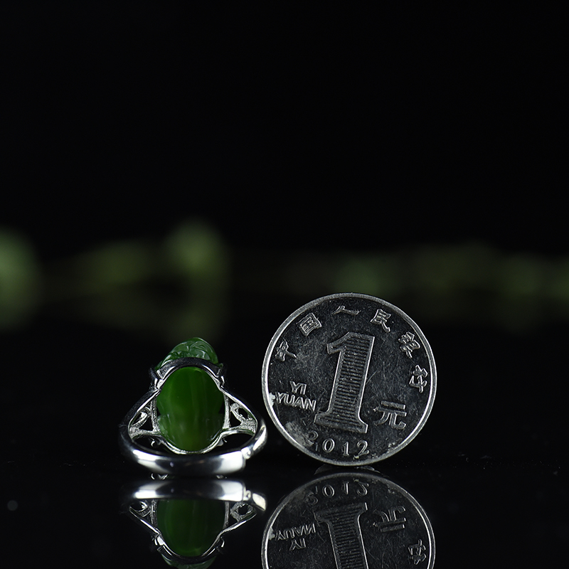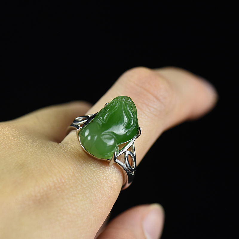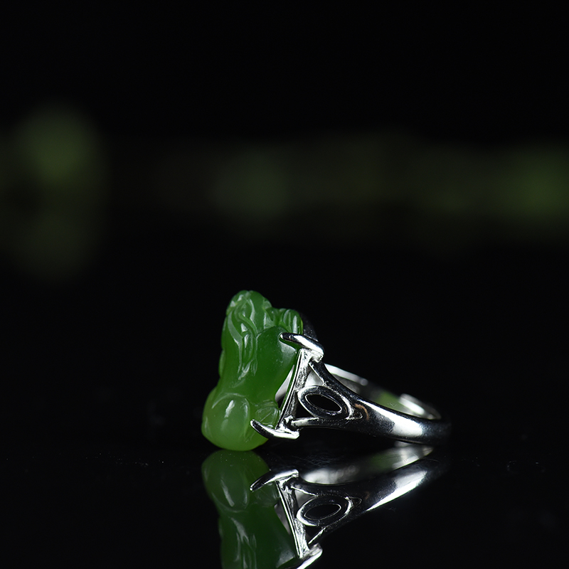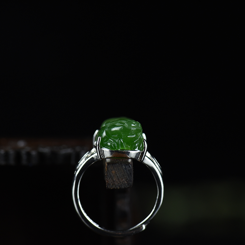 • [名  称] 银镶山料和田碧玉貔貅戒指