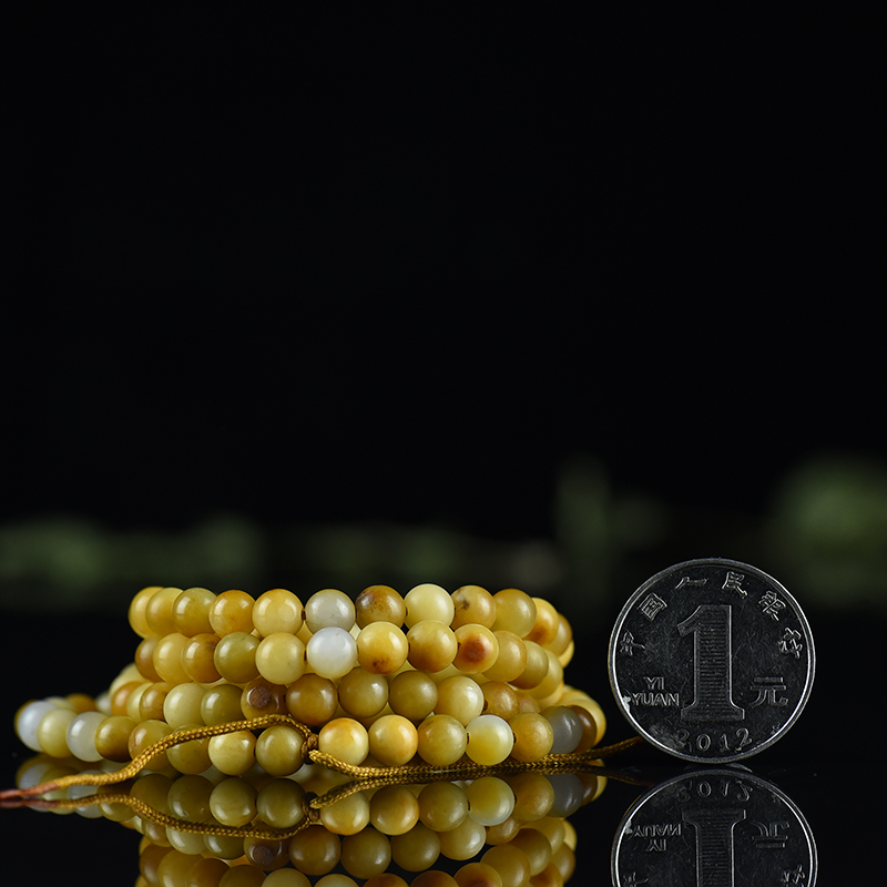 • [名  称] 6mm籽料和田玉黄沁多圈手串