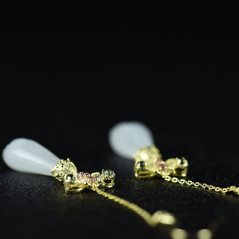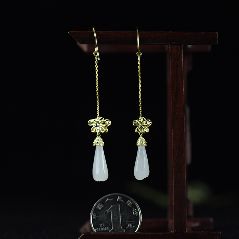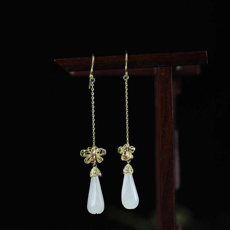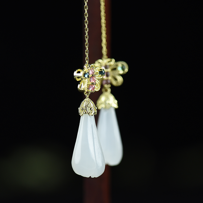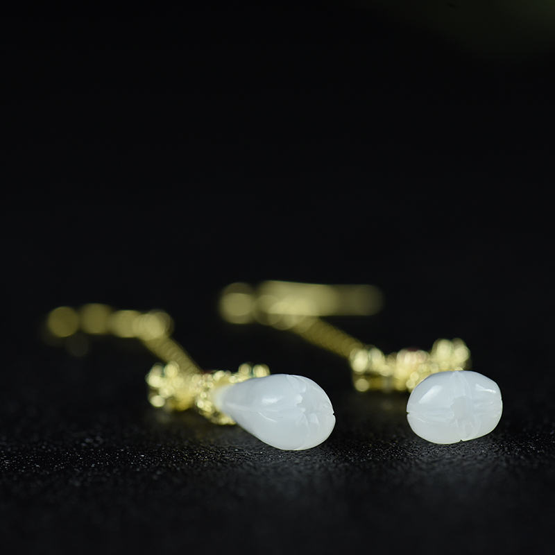 • [名  称] 银镶山料和田玉兰花耳坠