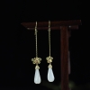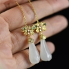 • 银镶山料和田玉兰花耳坠