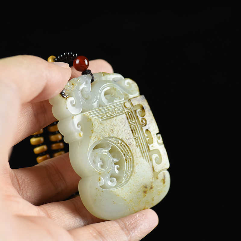 • 籽料和田白玉龙凤牌吊坠