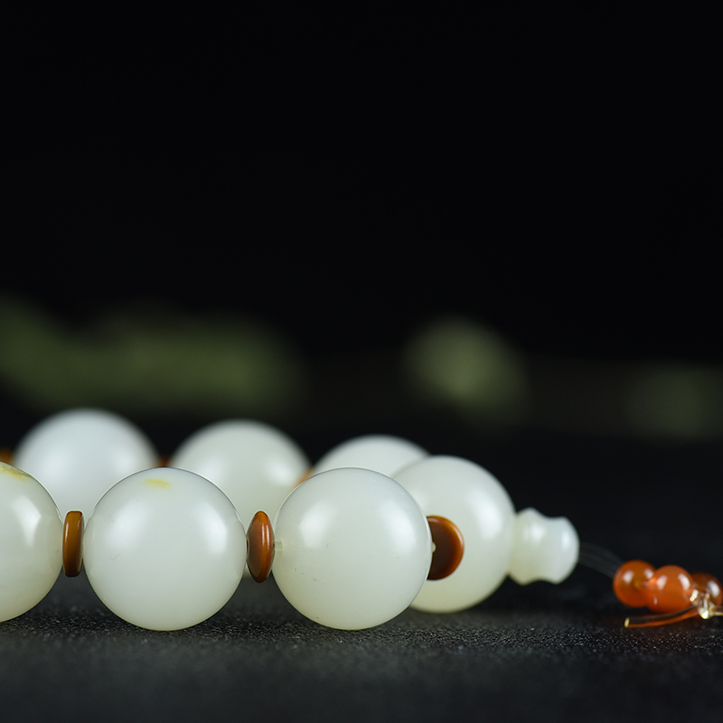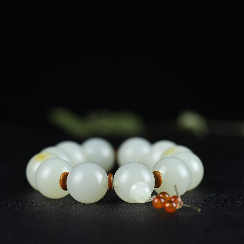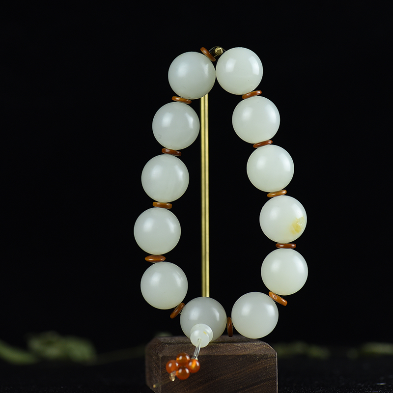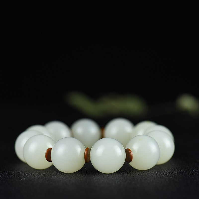 • [名  称] 山流水料和田羊脂白玉单圈手串