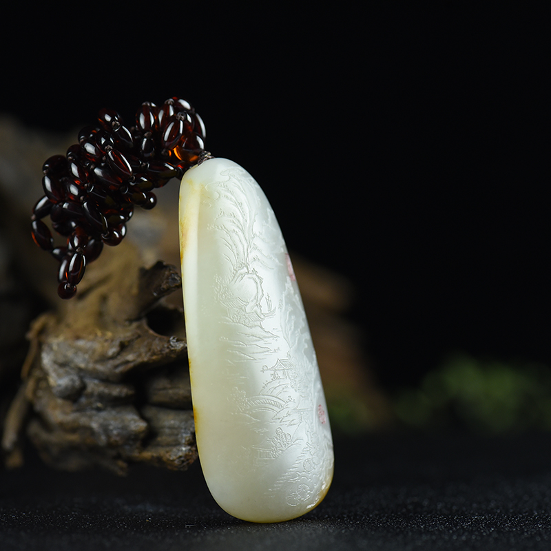 • 籽料和田白玉嵩山访友吊坠