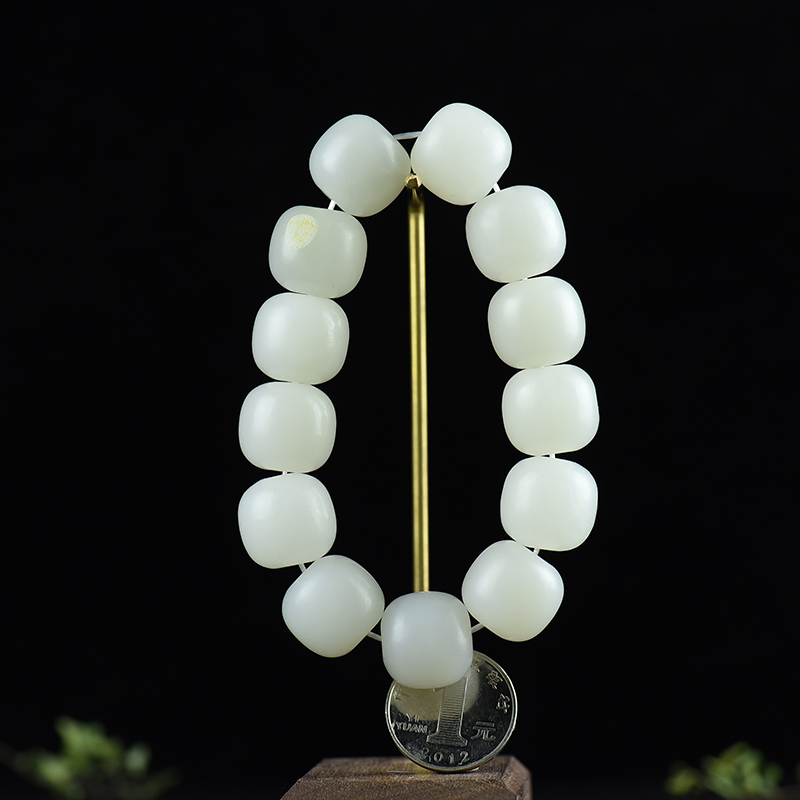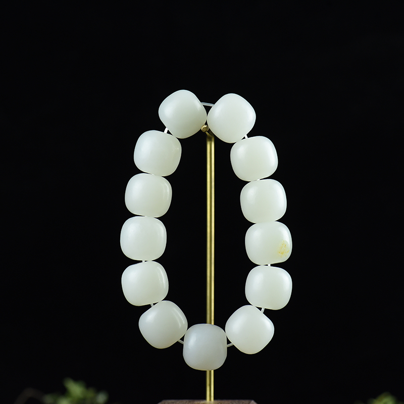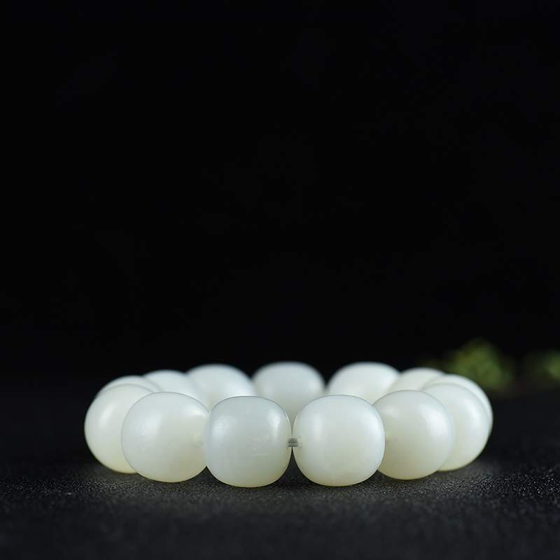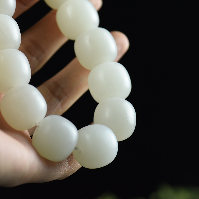 • [名  称] 山流水料和田白玉老形珠单圈手串