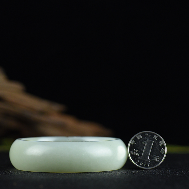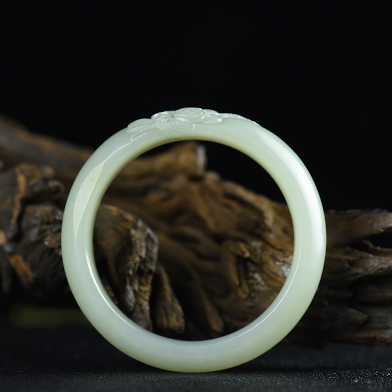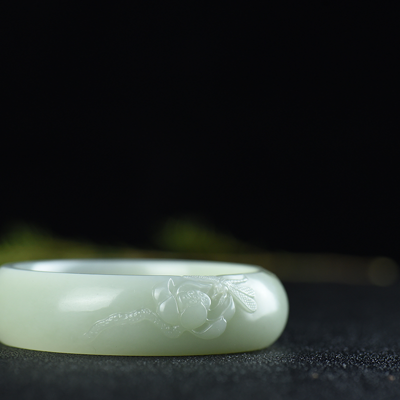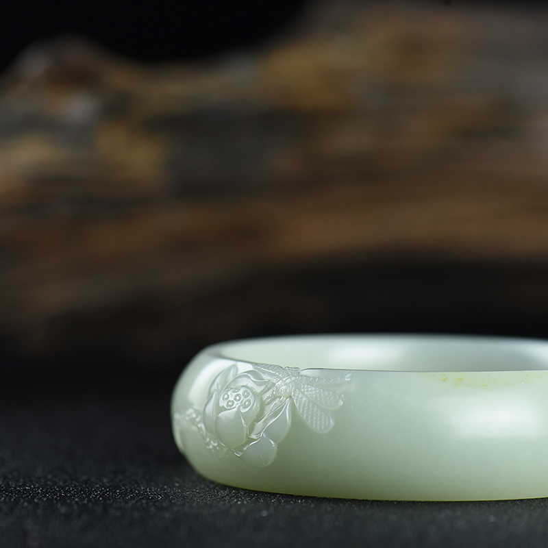 • 58mm籽料和田青白玉荷塘清趣手镯