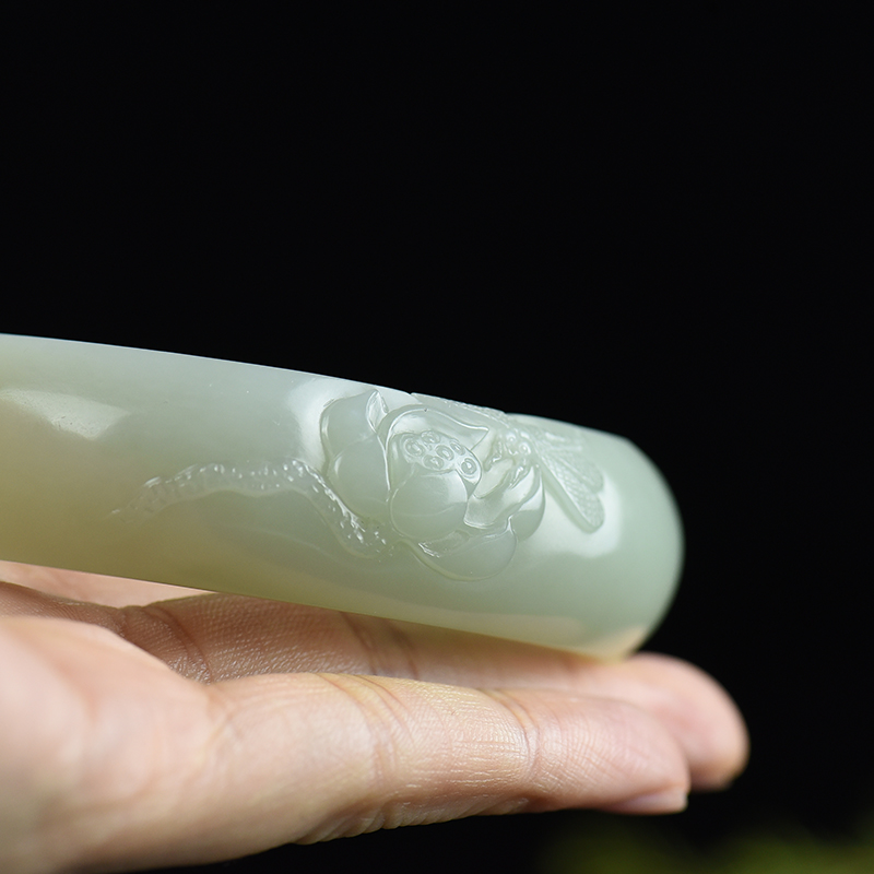 • [名  称] 58mm籽料和田青白玉荷塘清趣手镯