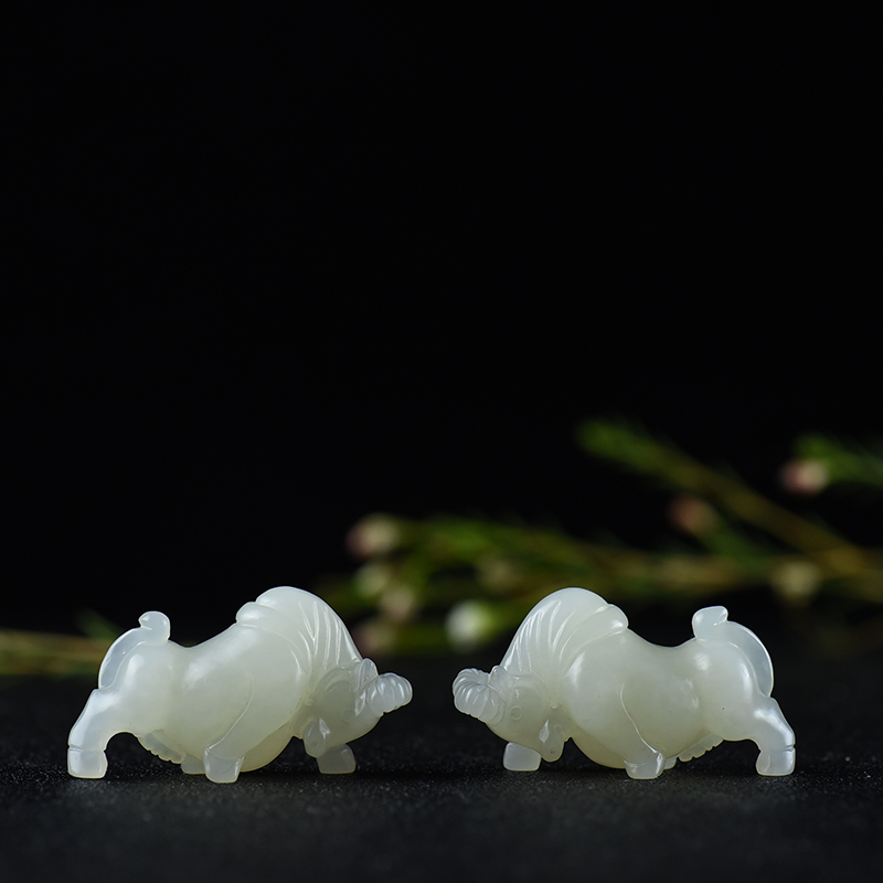 • [名  称] 籽料和田白玉牛气冲天摆件(二件)