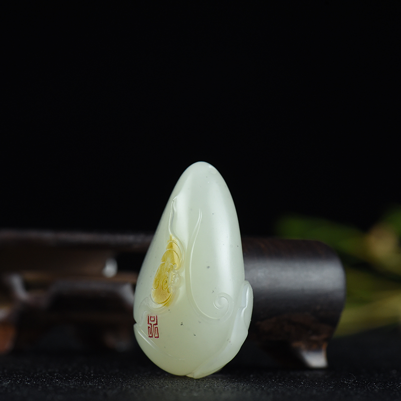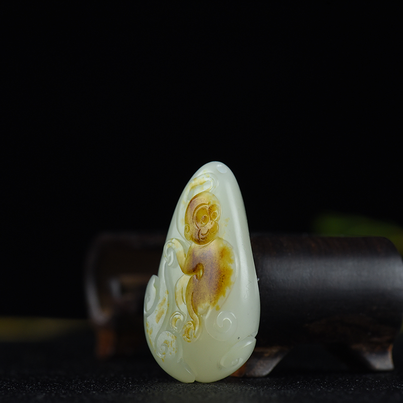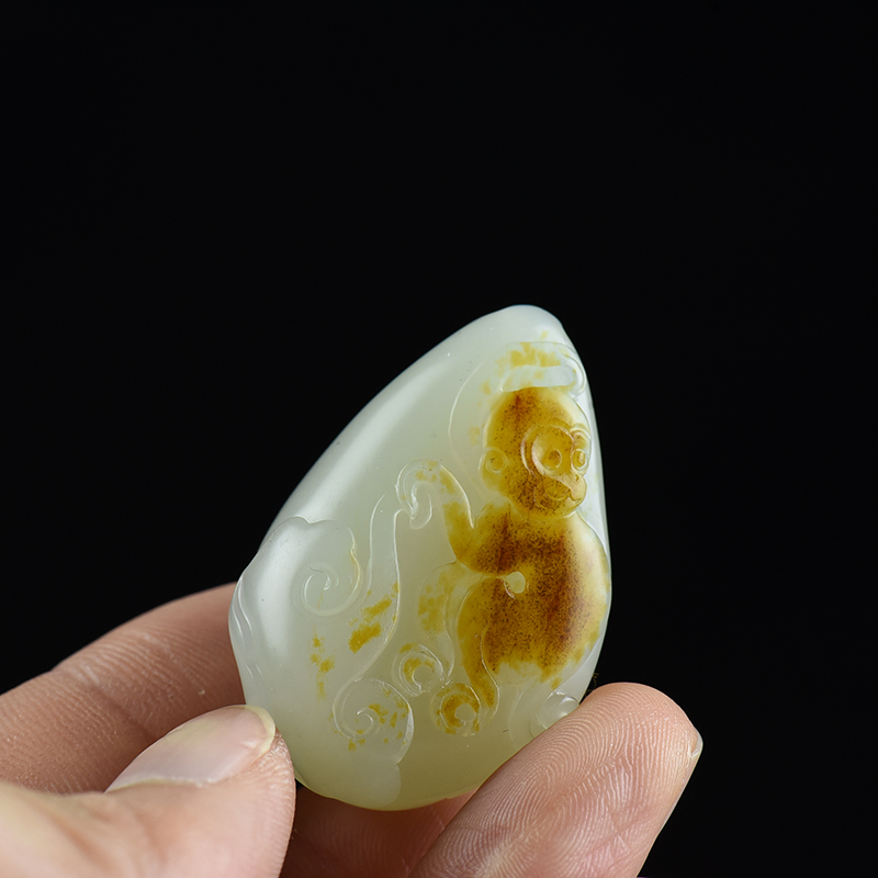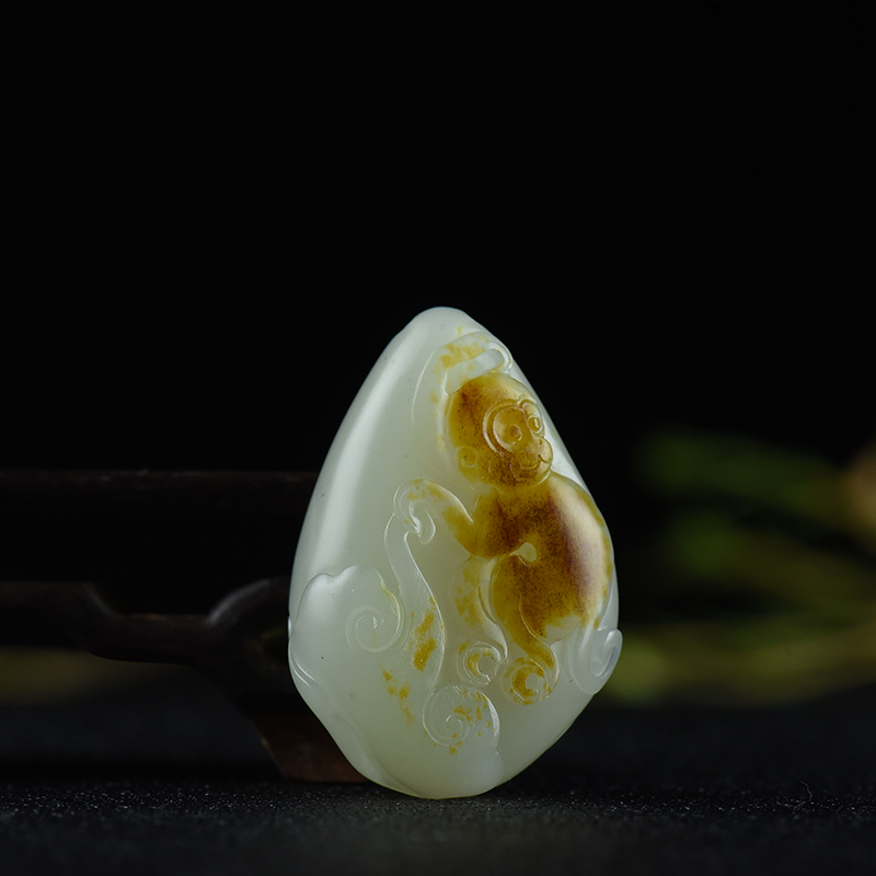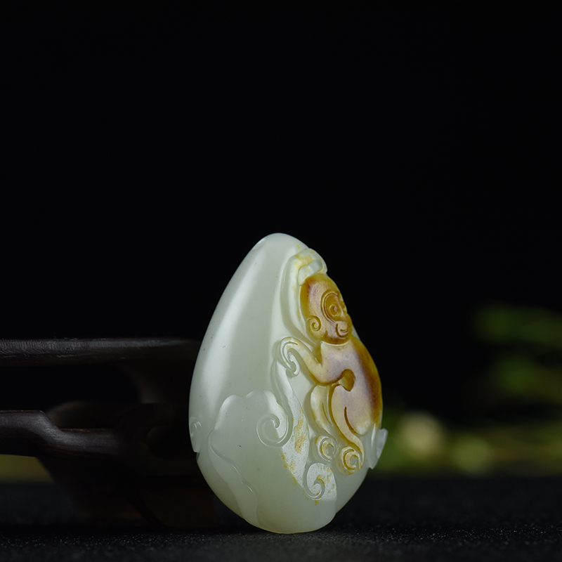 • 籽料和田白玉如意猴吊坠