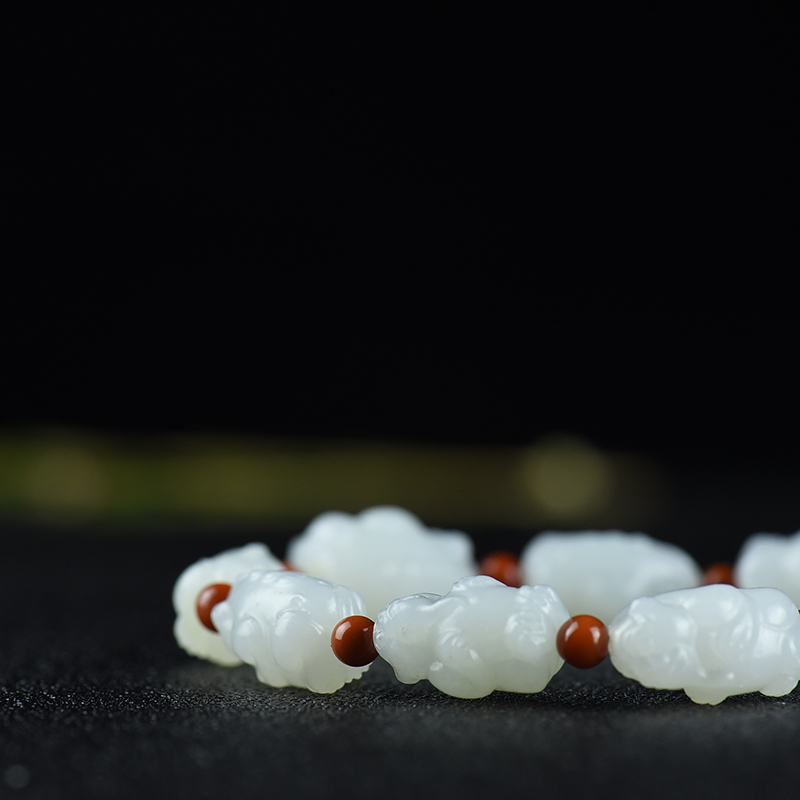 • [名  称] 籽料和田白玉貔貅单圈手串