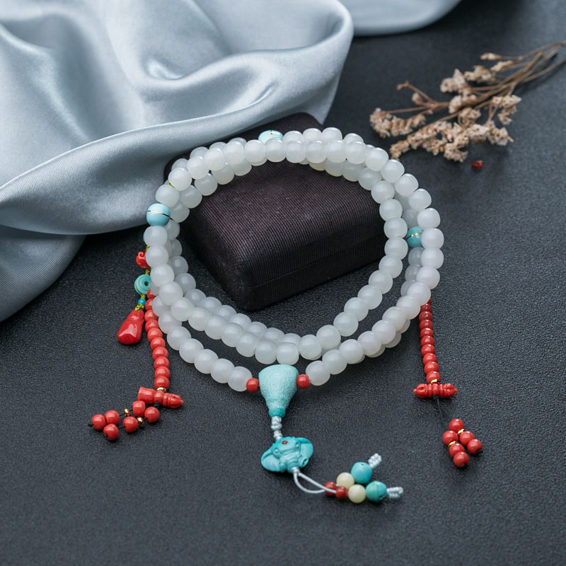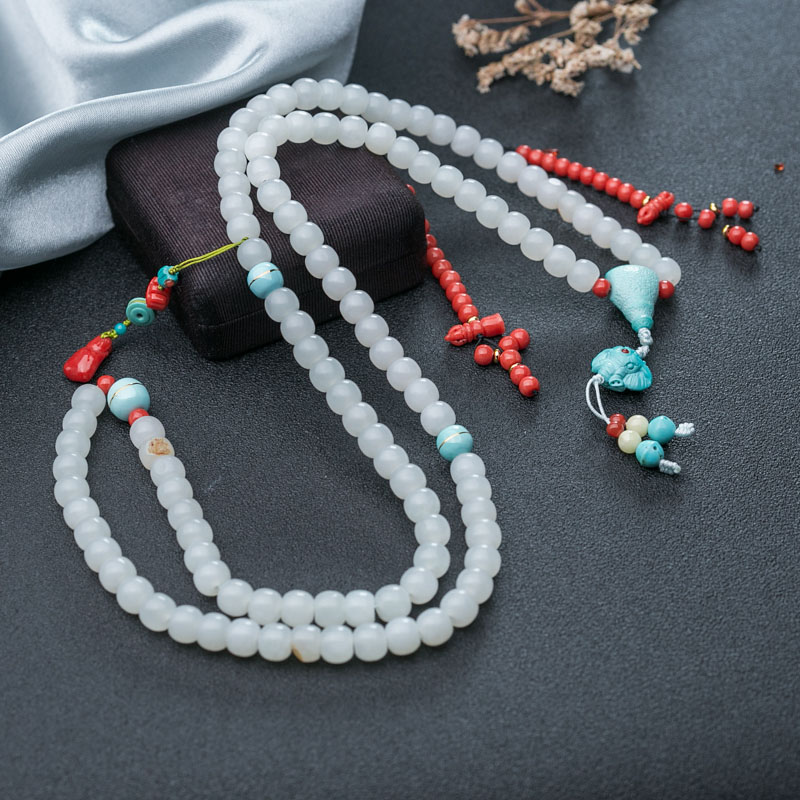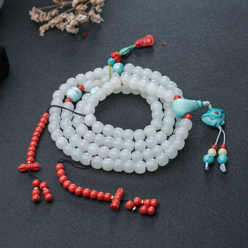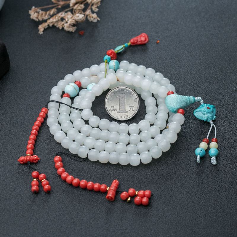 • [产品描述] 配石:蜜蜡、珊瑚、绿松;描金工艺,铜隔珠,带皮
