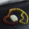 每件宝贝都是天然宝石,佩戴一段时间以后要注意清洁保养。佩戴过程中也要注意不要被硬物碰撞刮擦,避免高温、不要接触酸碱等有腐蚀性的物体以及有机溶剂。这样会让您佩戴的宝贝更漂亮