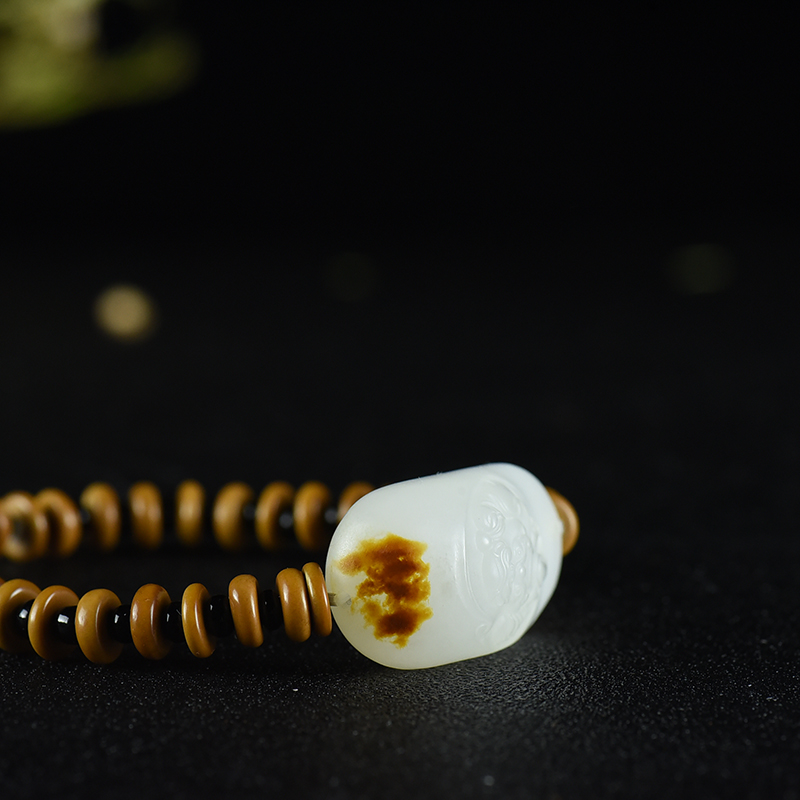 • 山料和田羊脂白玉守护单圈手串