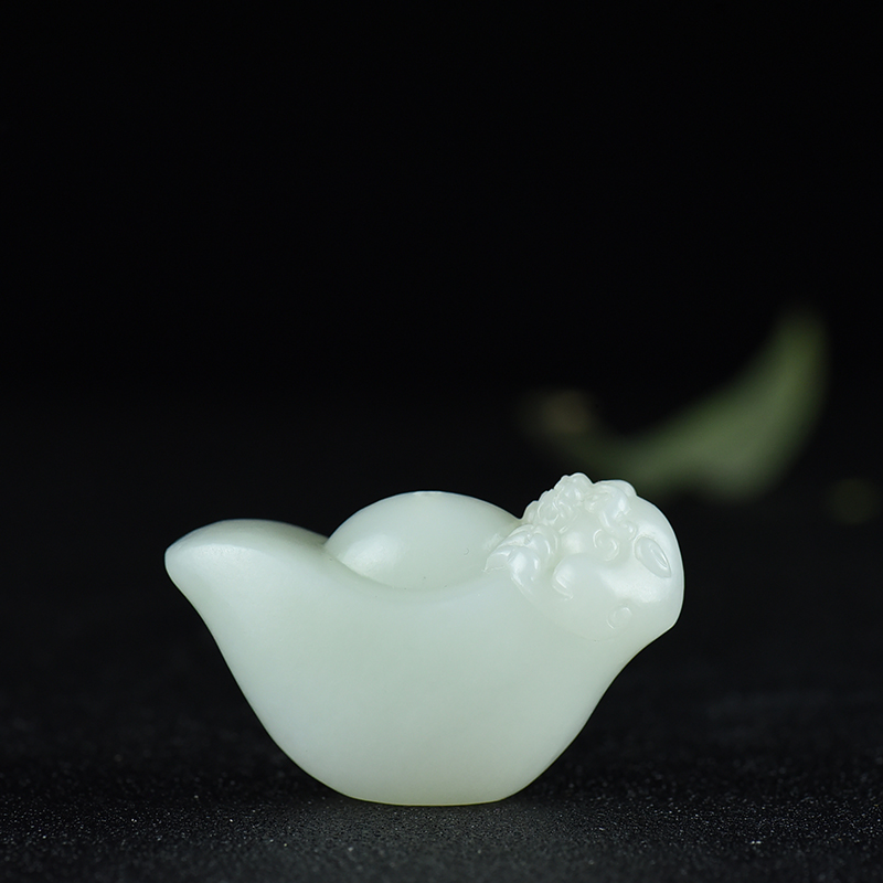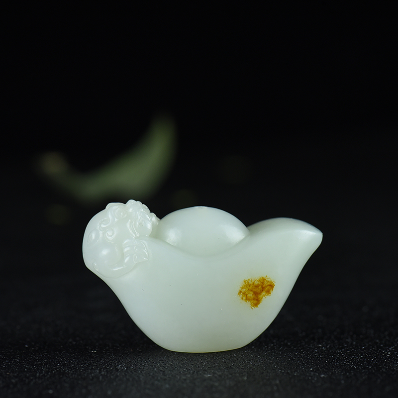 • 山流水料和田羊脂白玉招财进宝吊坠