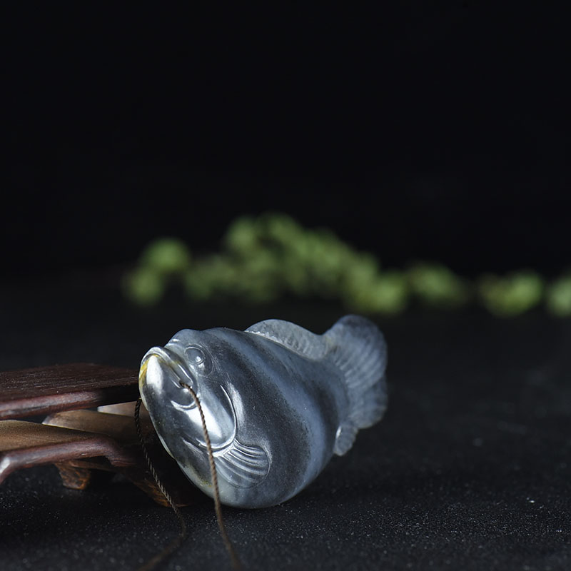 • [名  称] 籽料和田玉青花年年有余吊坠
