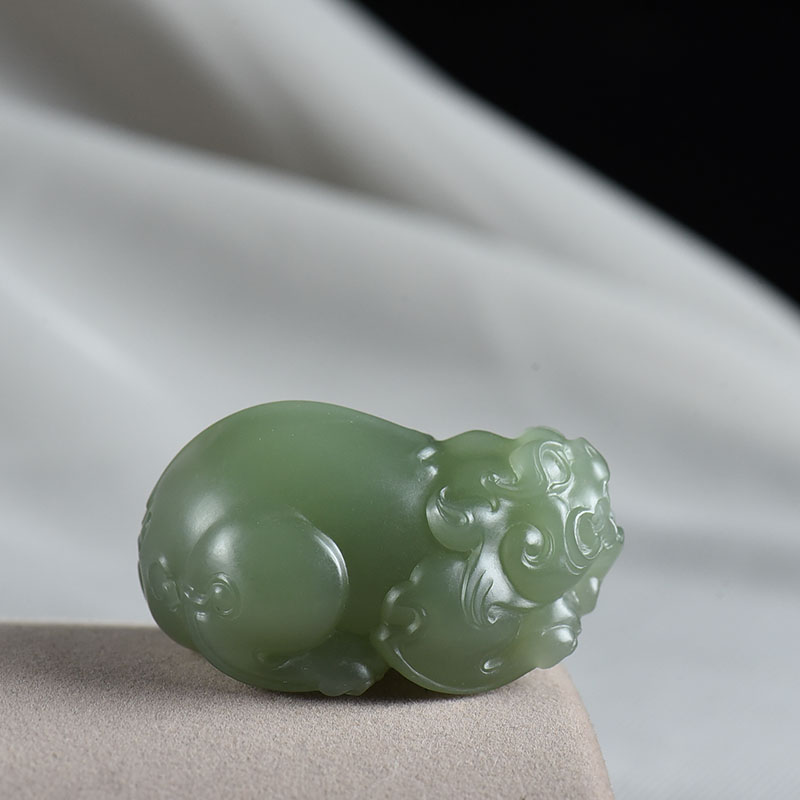 • 山料和田碧玉貔貅手把件