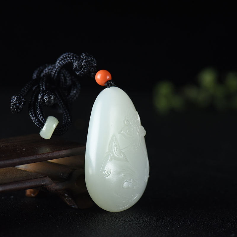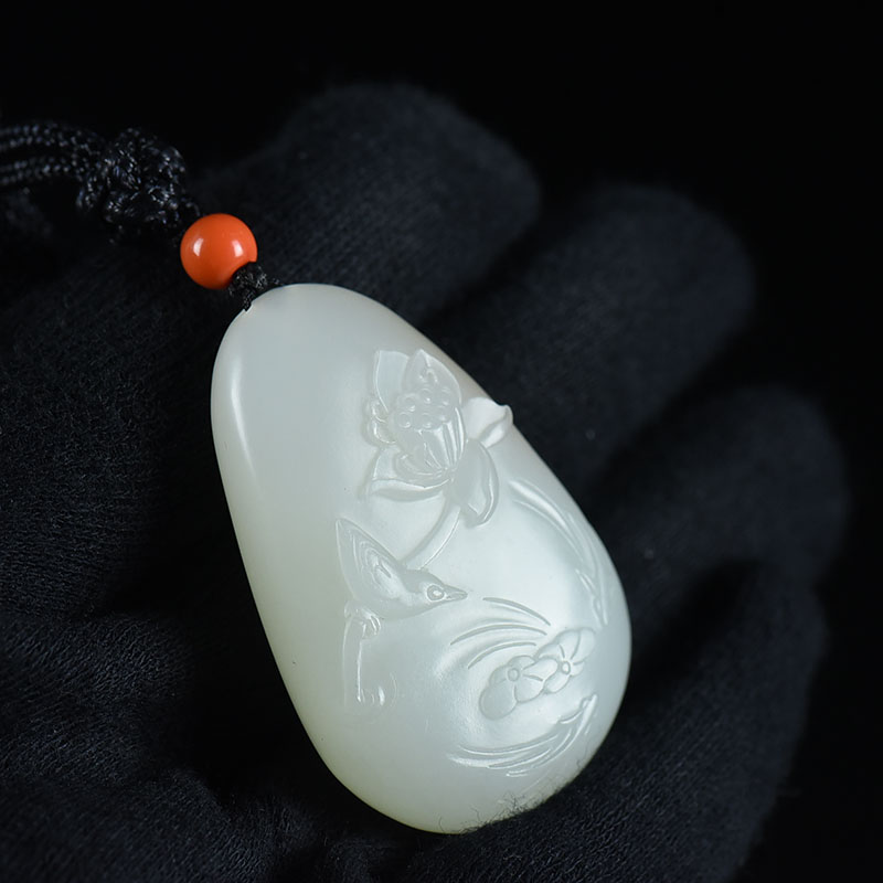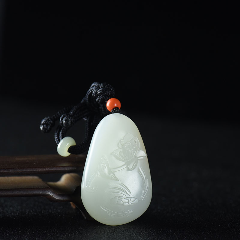 • 籽料和田白玉荷花吊坠
