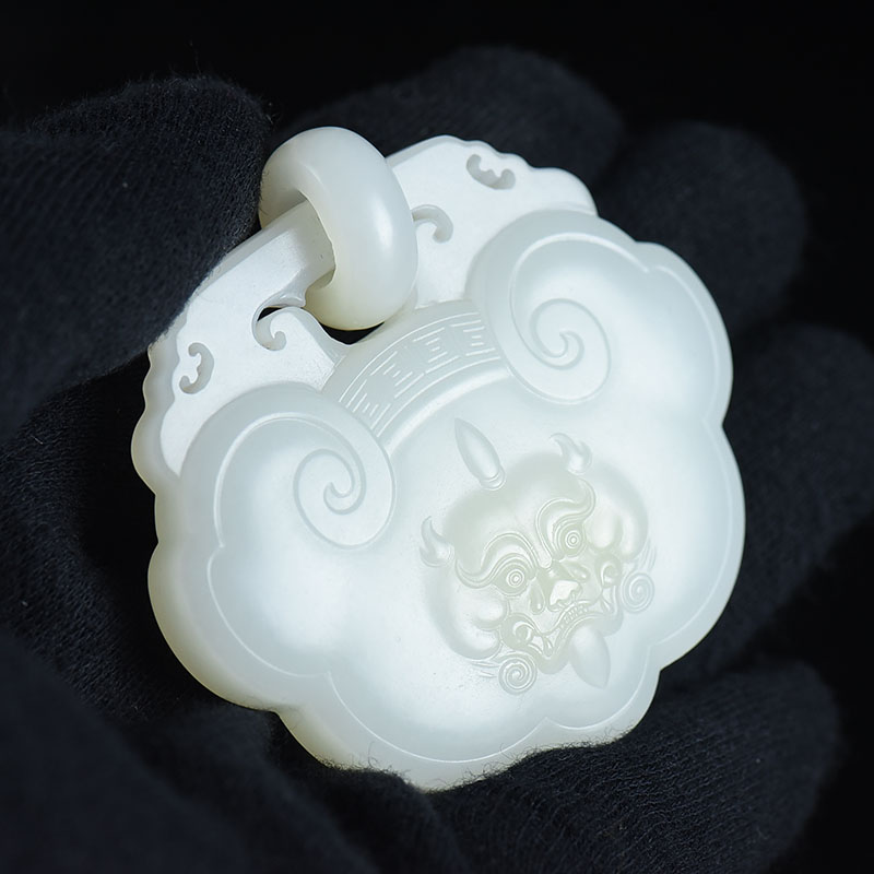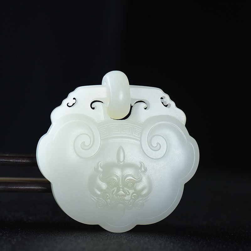 • [名  称] 山流水料和田羊脂白玉守护锁吊坠