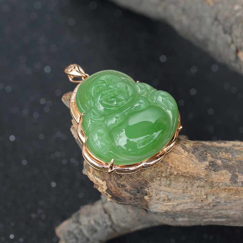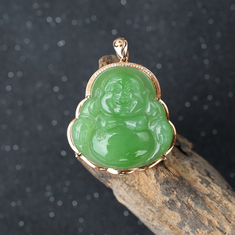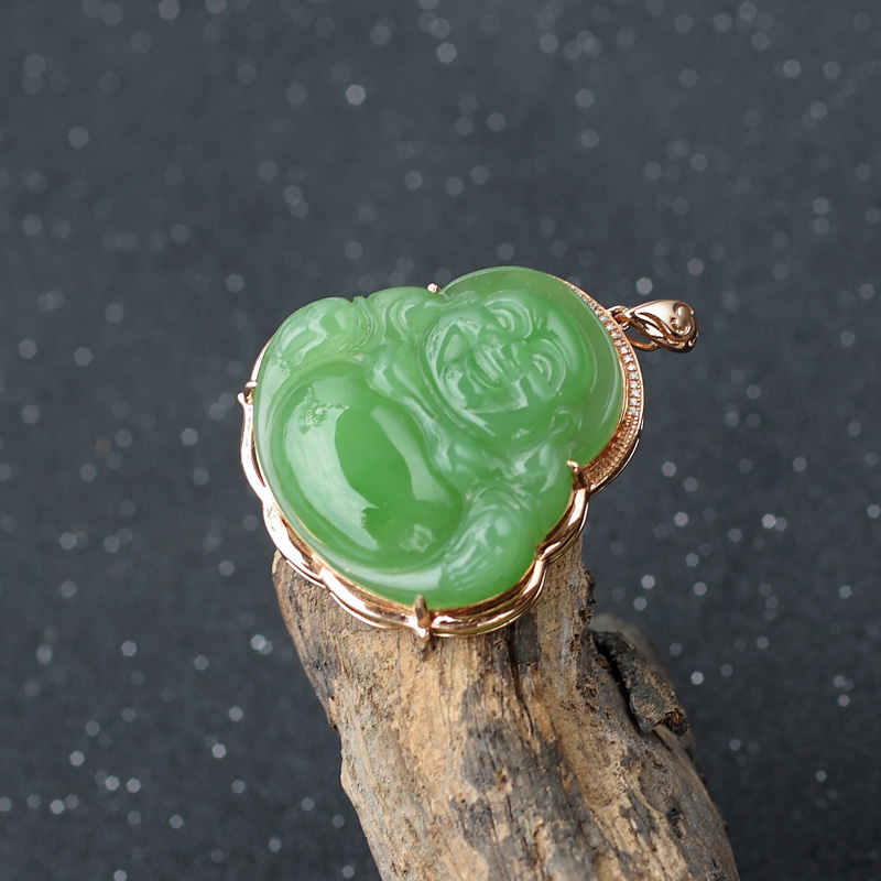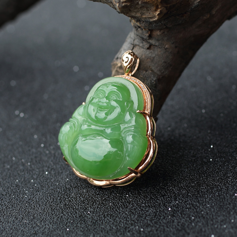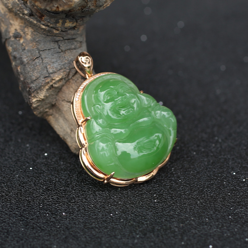 • [名  称] 18K山料和田碧玉弥勒佛吊坠