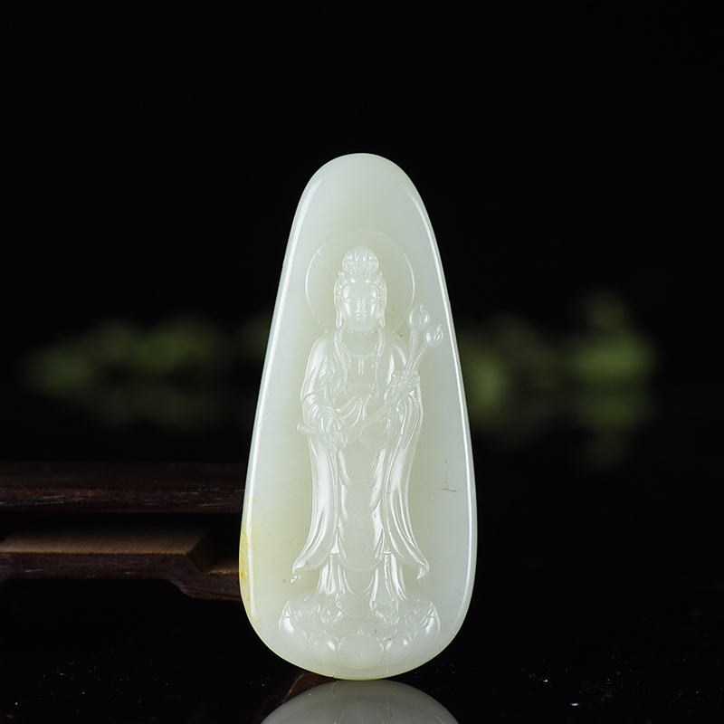 • 籽料和田白玉观音吊坠