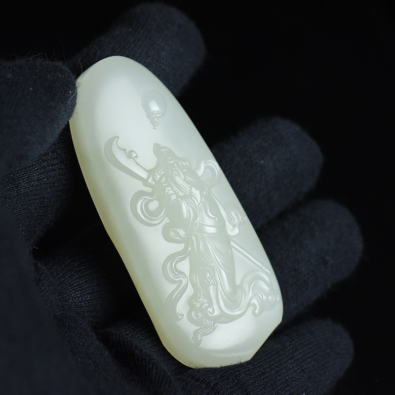 • 籽料和田白玉关公吊坠