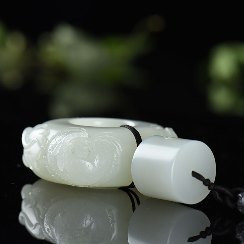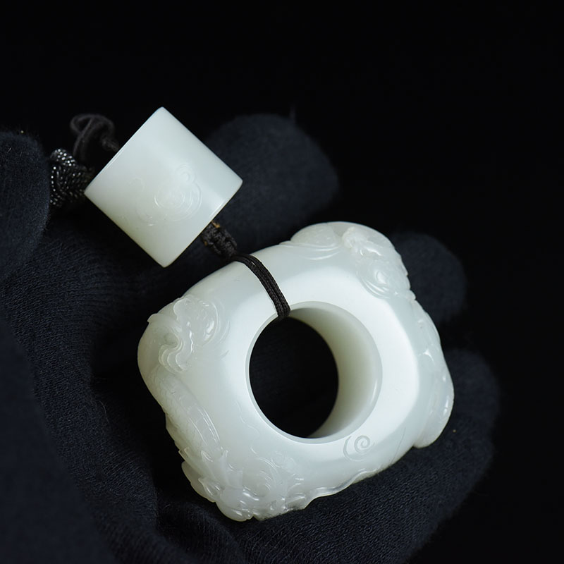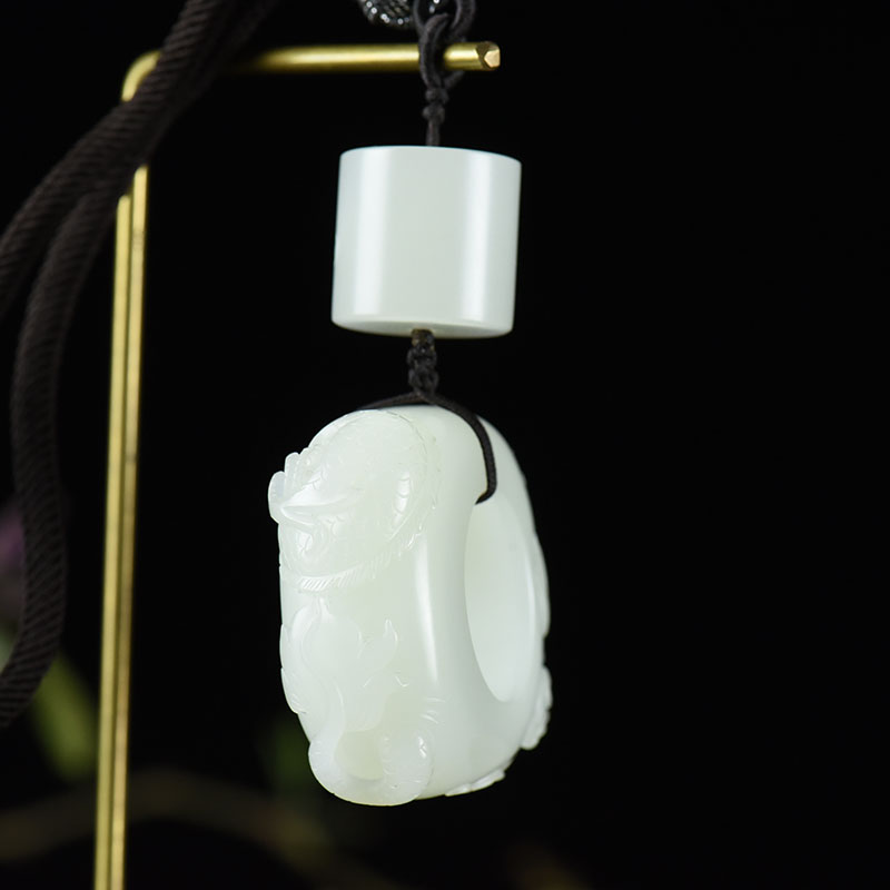• 籽料和田白玉飞龙在天玉琮吊坠