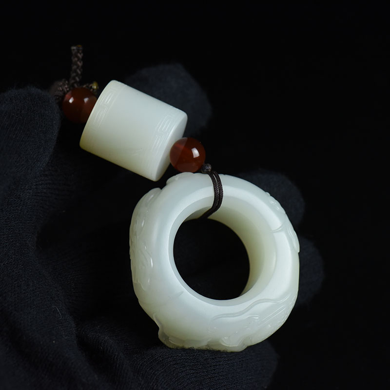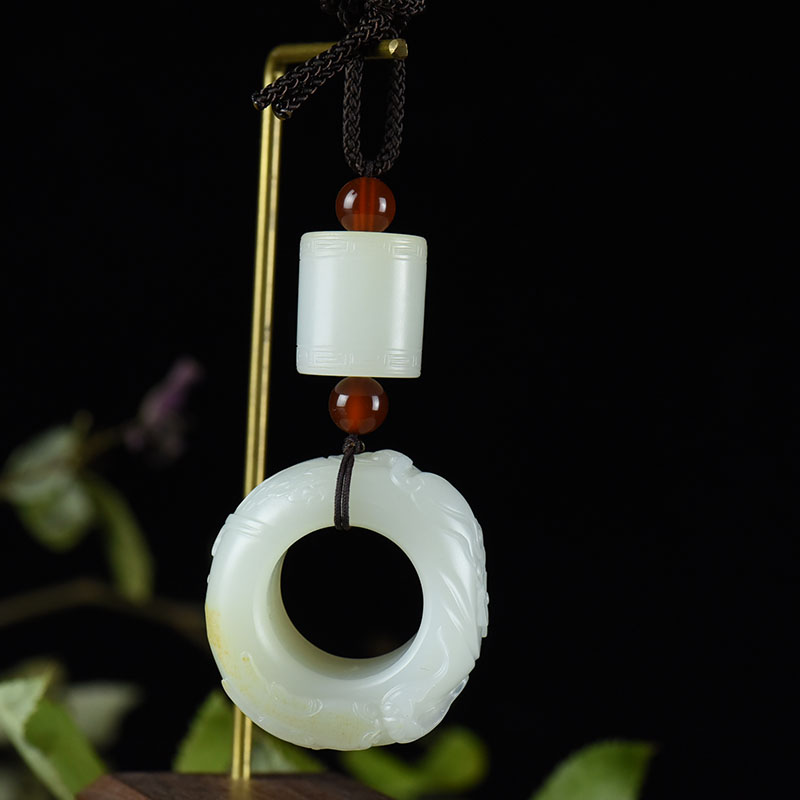 • 籽料和田白玉飞龙在天玉琮吊坠