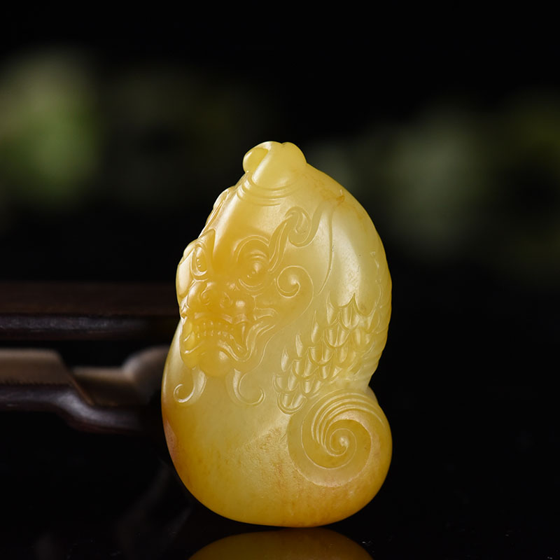• [名  称] 籽料和田玉黄沁鱼化龙吊坠