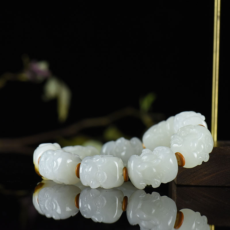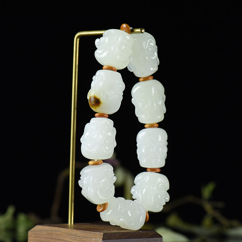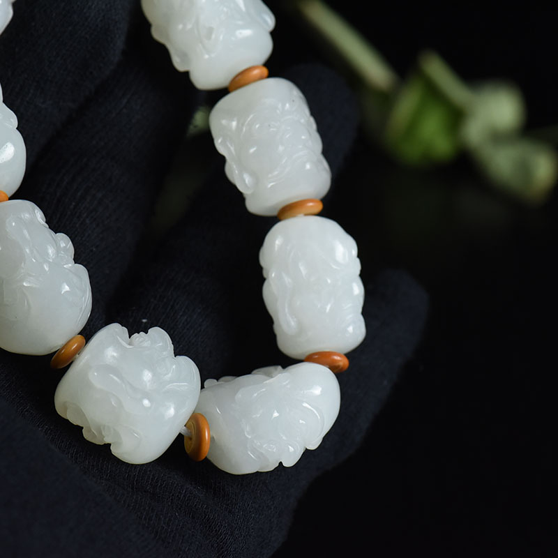 • [名  称] 山流水料和田白玉十八罗汉单圈手串