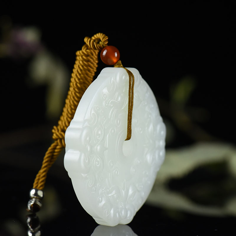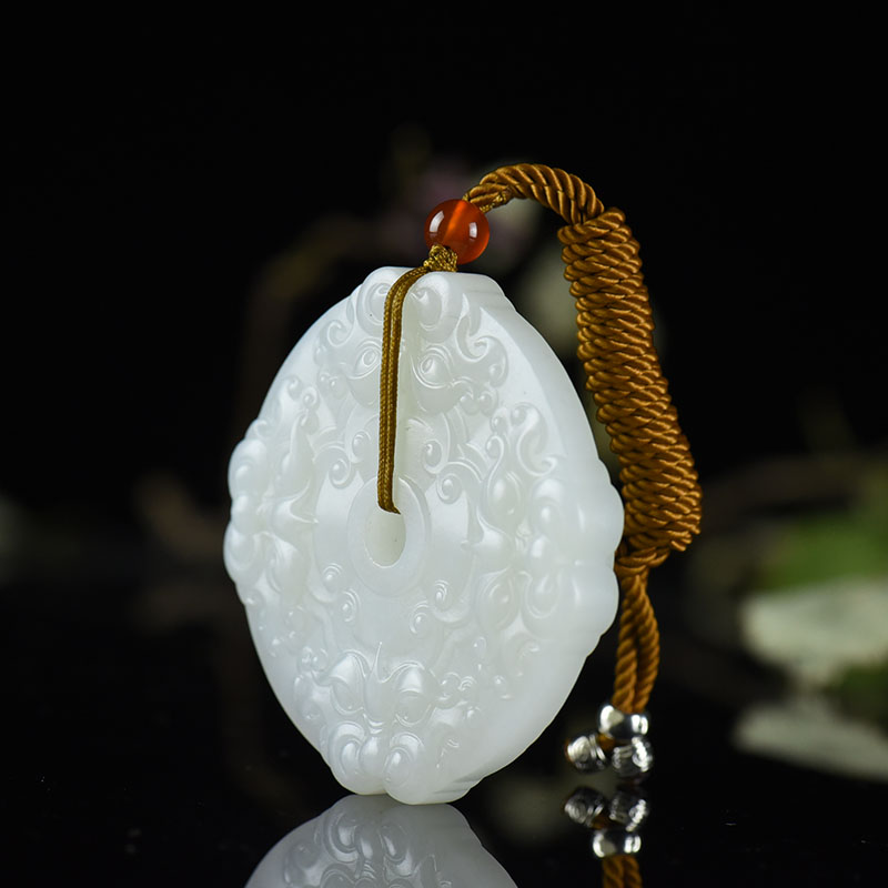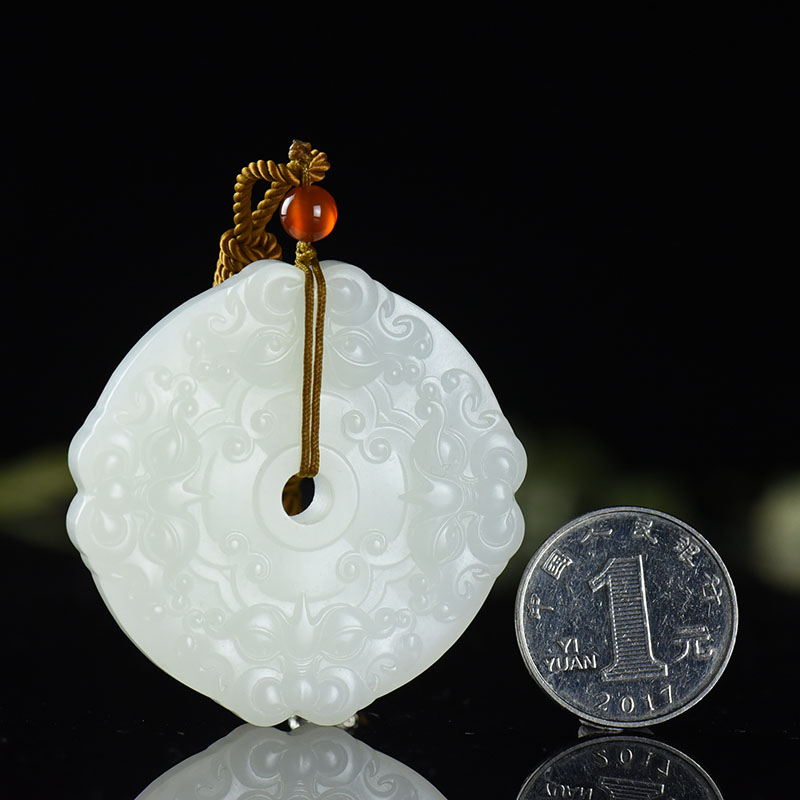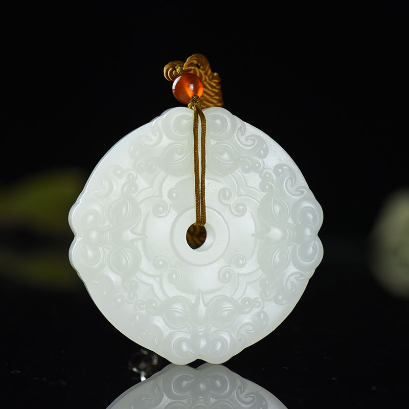 • 山流水料和田羊脂白玉守护平安扣吊坠