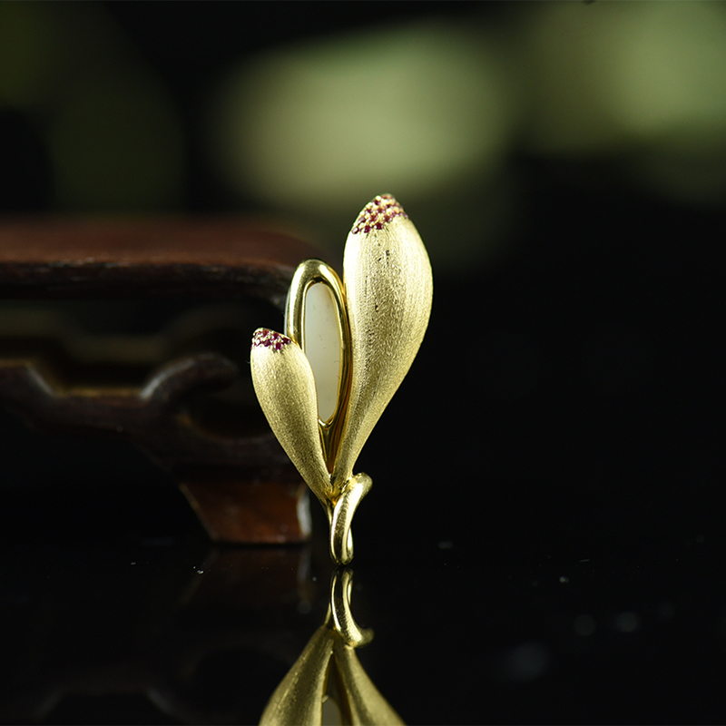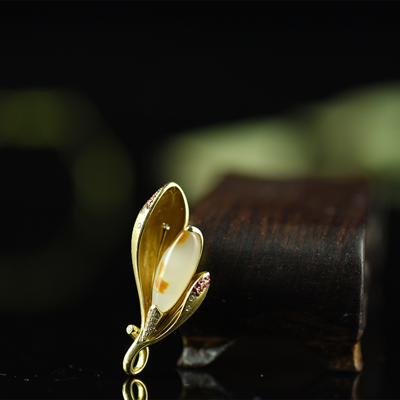 • [名  称] 18K籽料和田玉玉兰花吊坠