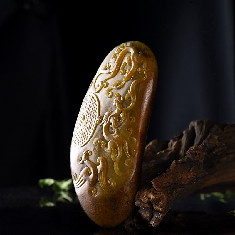 • [名  称] 籽料和田玉黄沁龙凤呈祥摆件