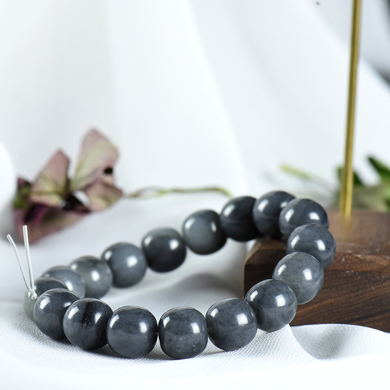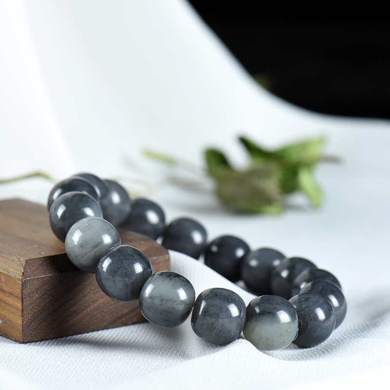 • [名  称] 籽料和田玉青花老形珠单圈手串