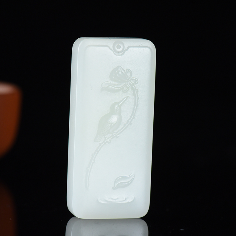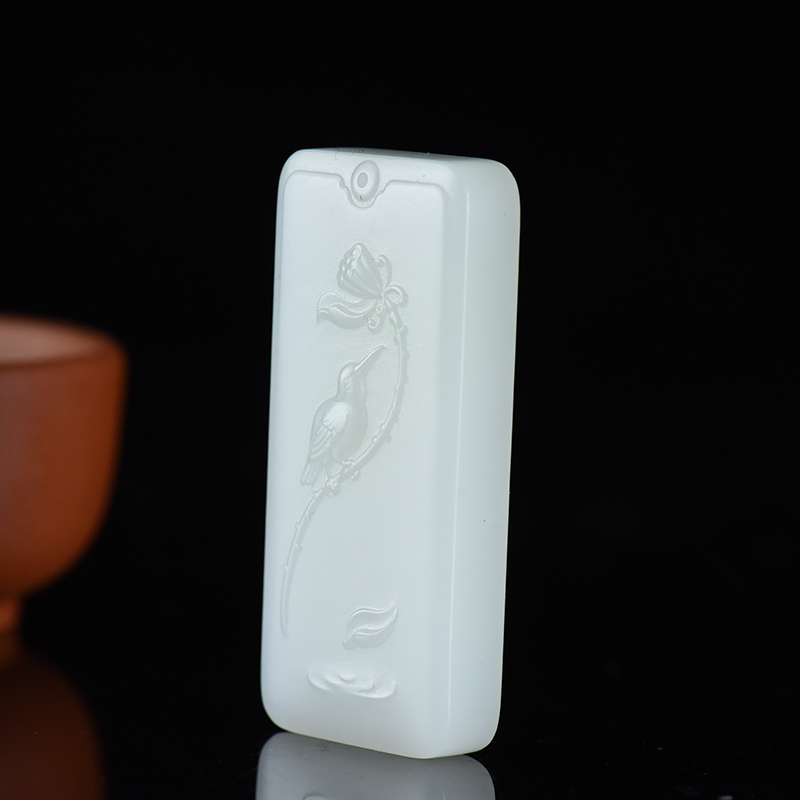 • 山流水料和田羊脂白玉富贵鸟吊坠