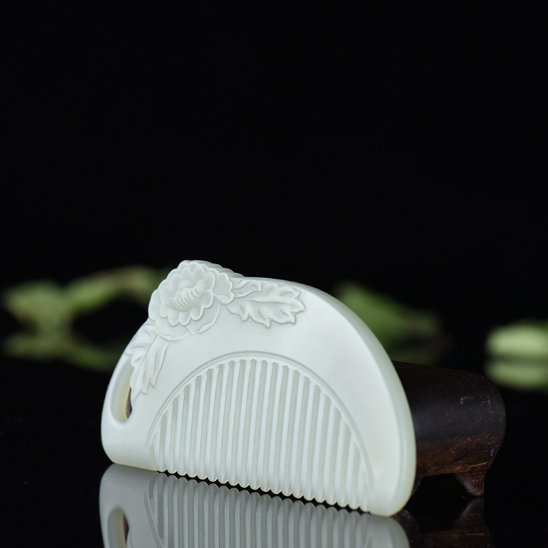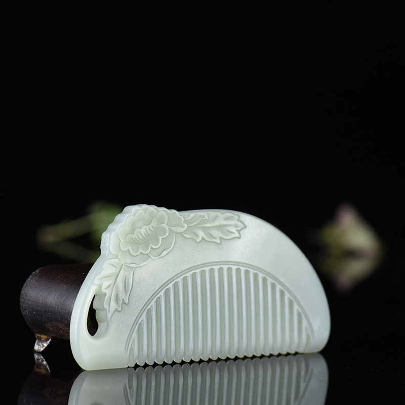 • 山料和田青白玉花开富贵梳子