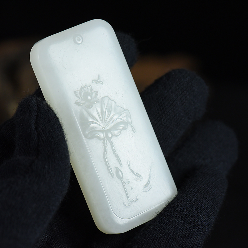 • 山料和田羊脂白玉荷塘清趣吊坠