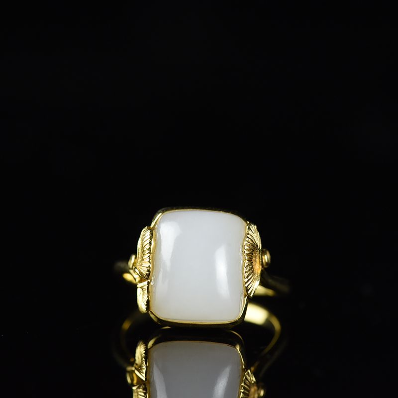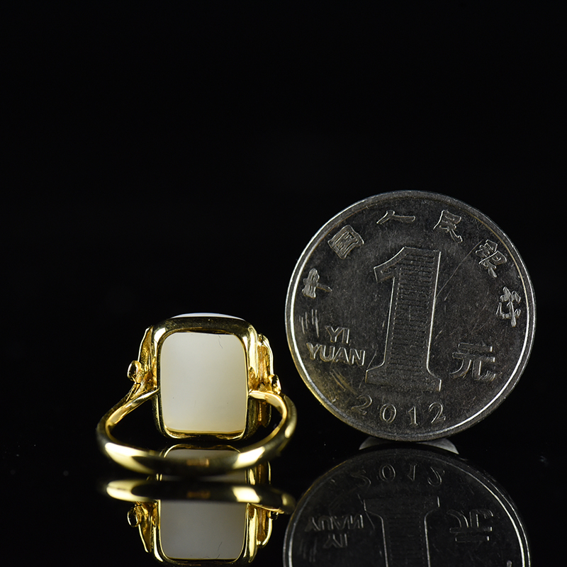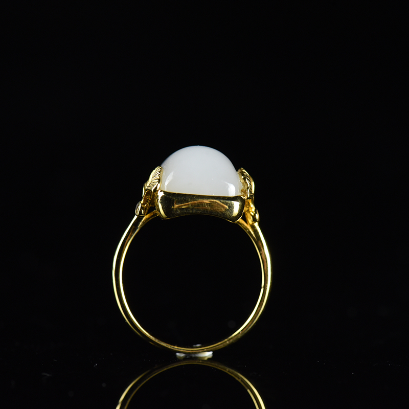 • [名  称] 18K籽料和田白玉银杏戒指