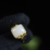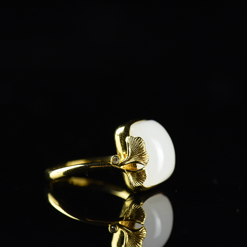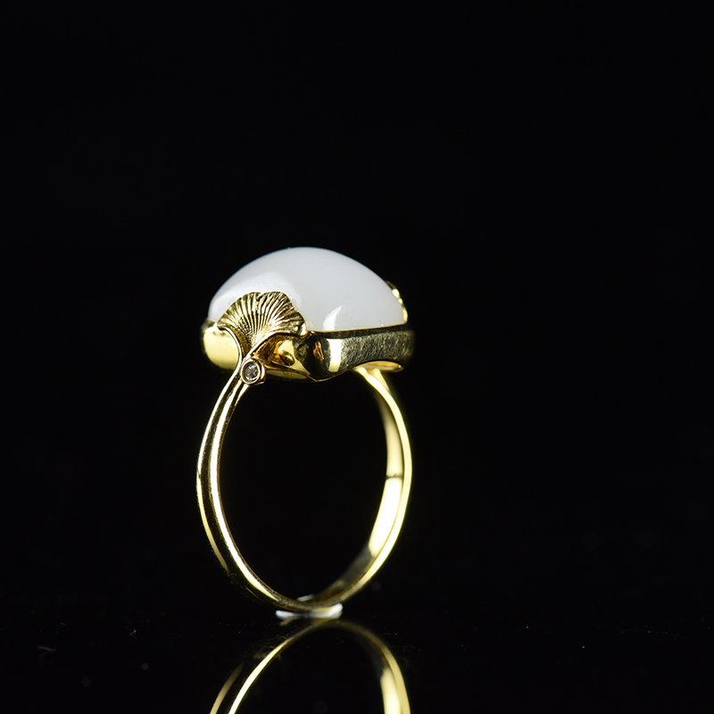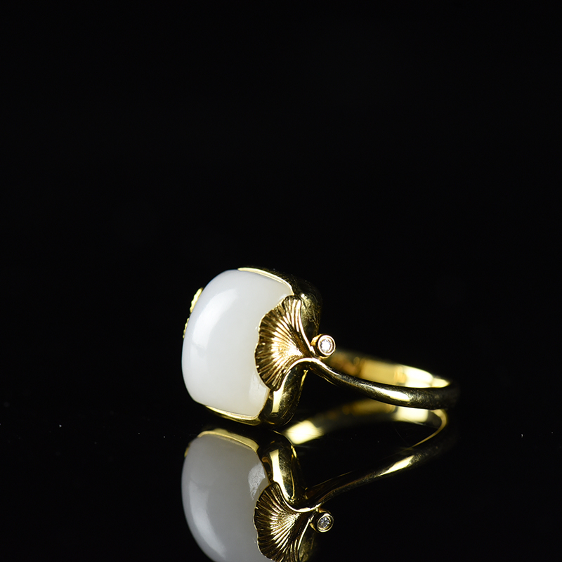 • 18K籽料和田白玉银杏戒指