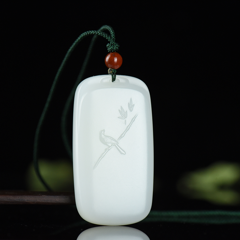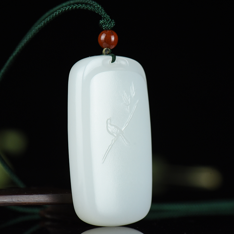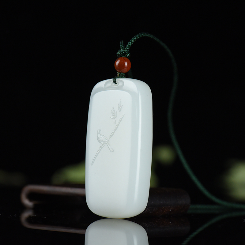 • 山流水料和田羊脂白玉喜鹊吊坠