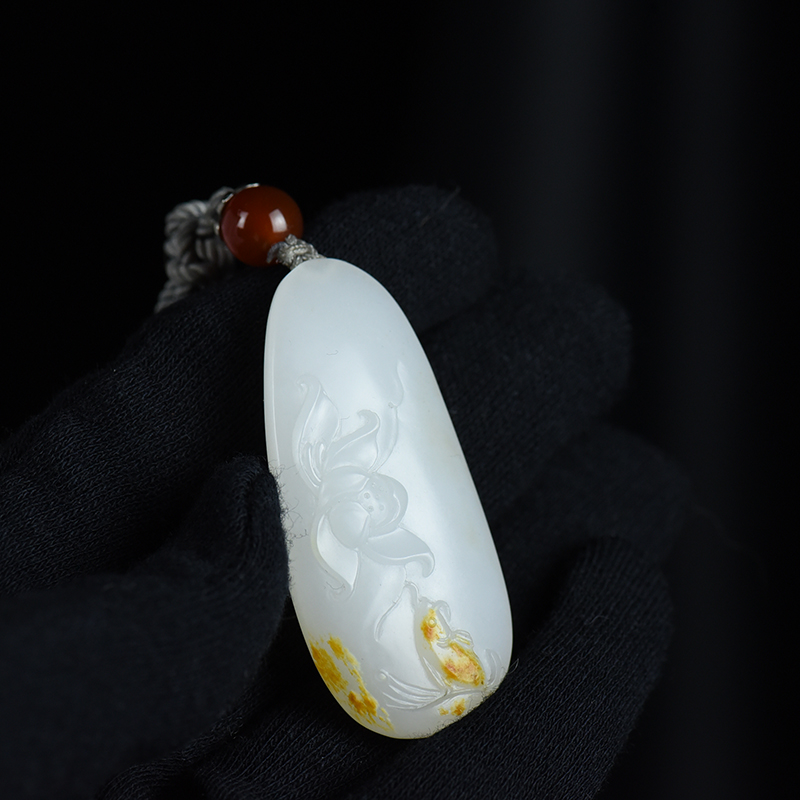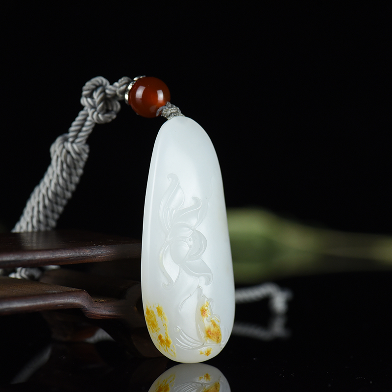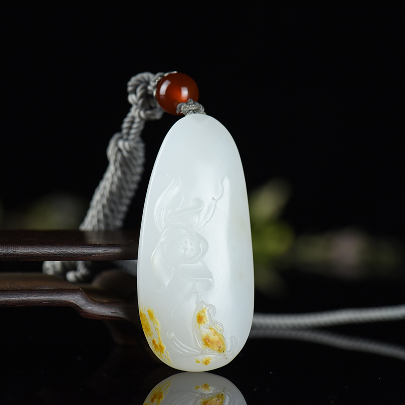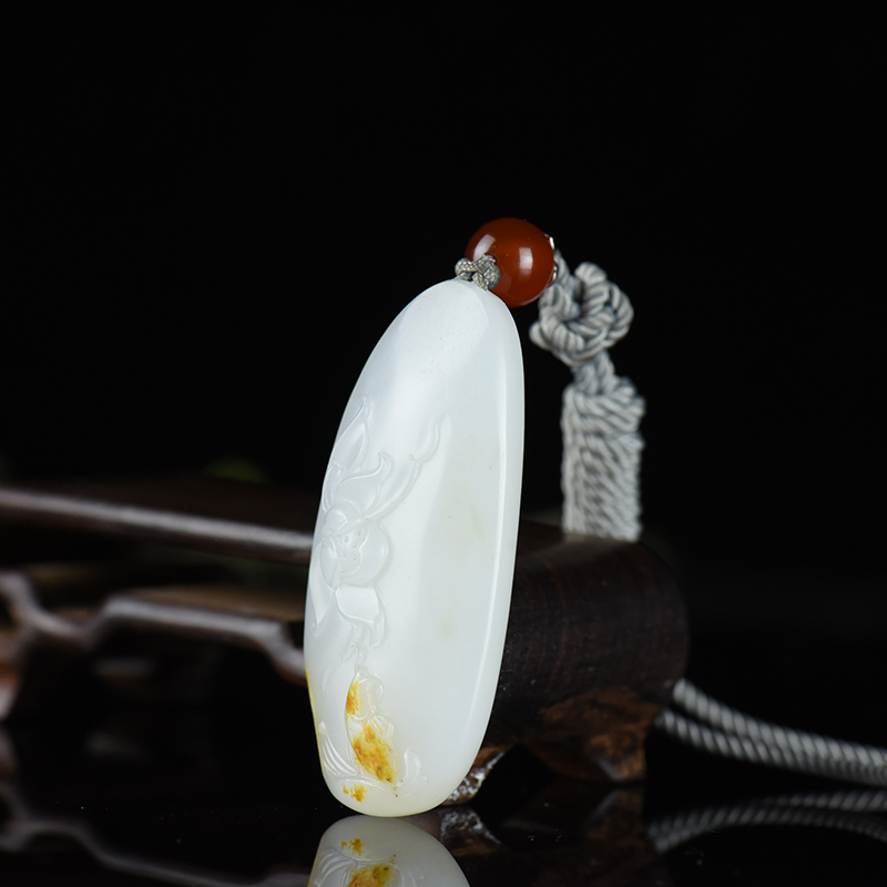 • [名  称] 山流水料和田羊脂白玉荷花吊坠