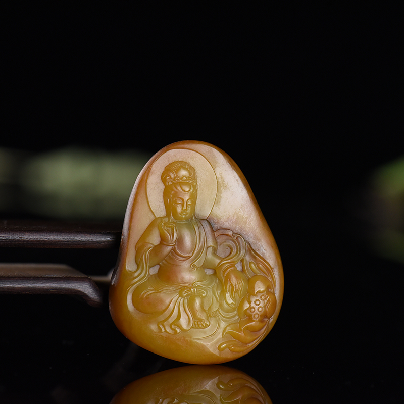 • [名  称] 籽料和田玉黄沁观音吊坠
