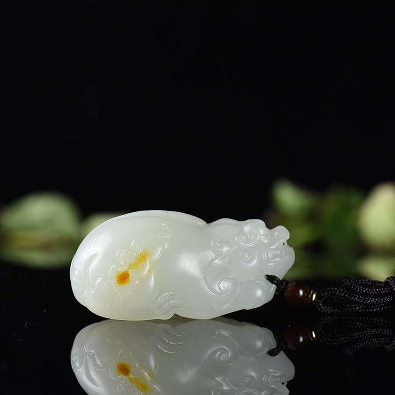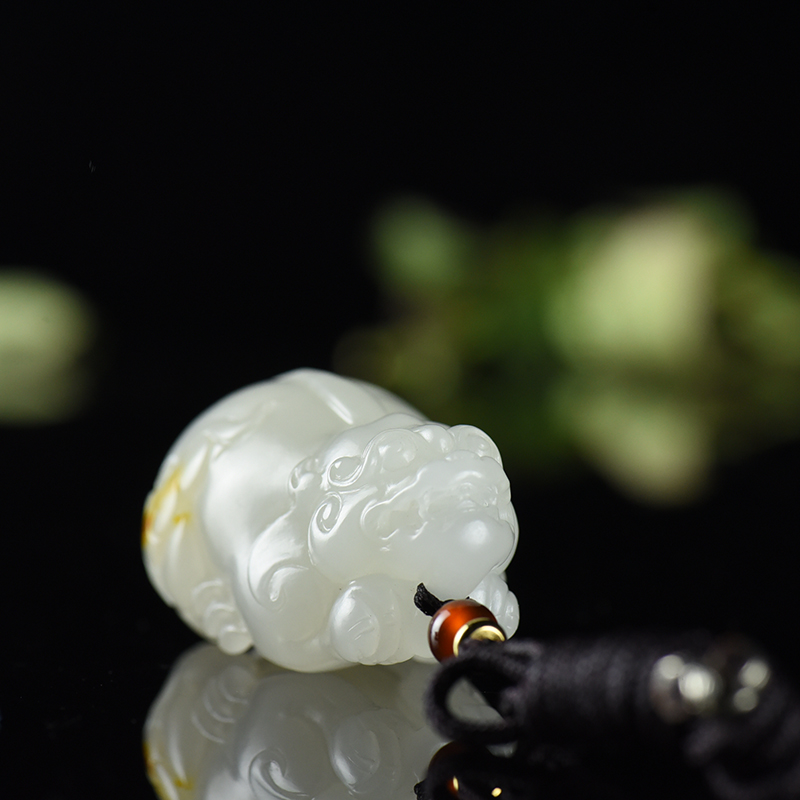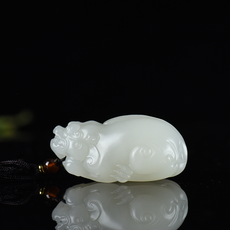 • 山流水料和田白玉貔貅吊坠