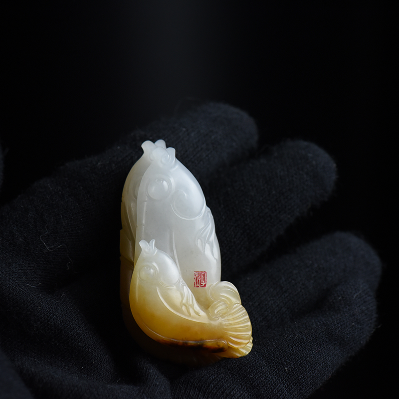 • 籽料和田白玉年年有余吊坠