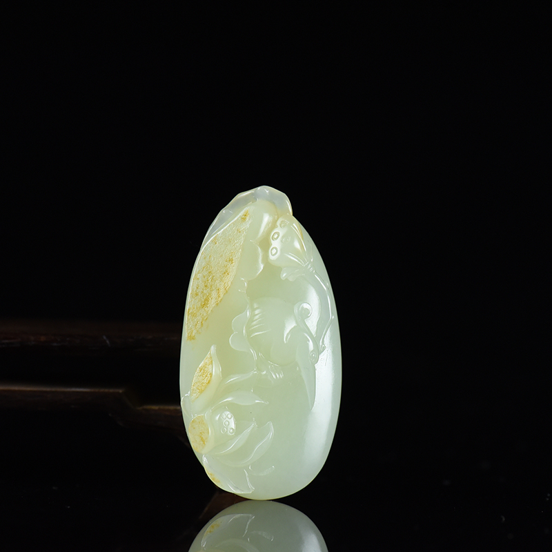 • [名  称] 籽料和田白玉荷塘清趣吊坠