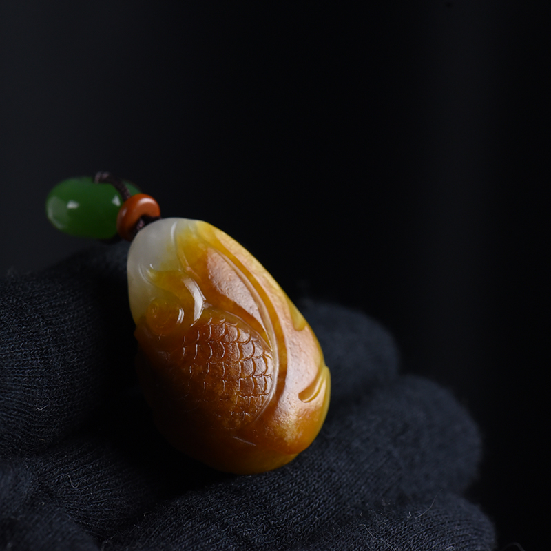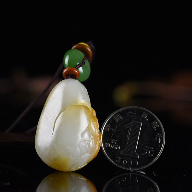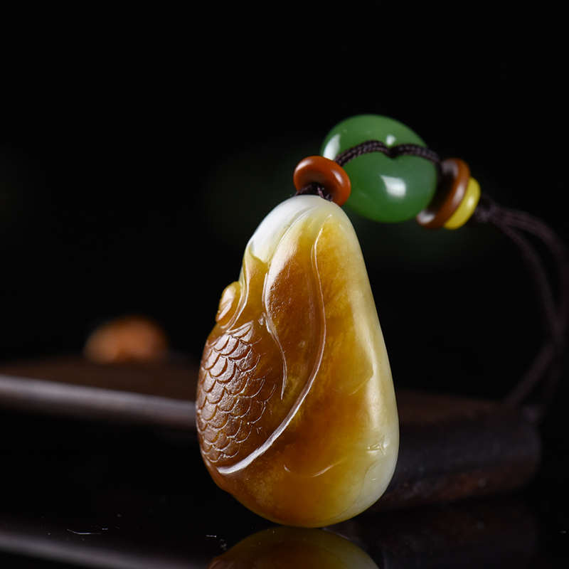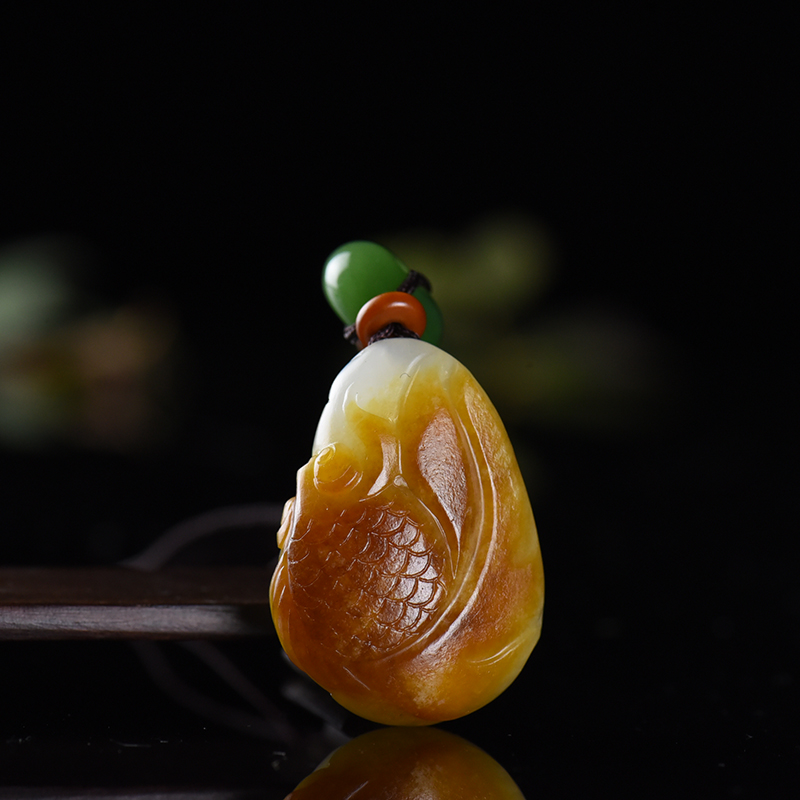 • [名  称] 俏色籽料和田玉年年有余吊坠