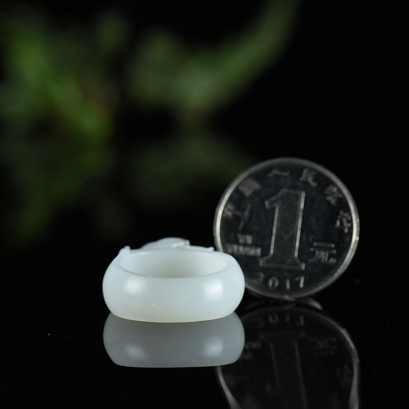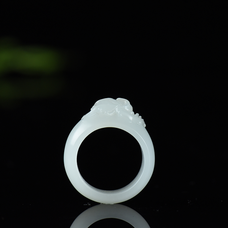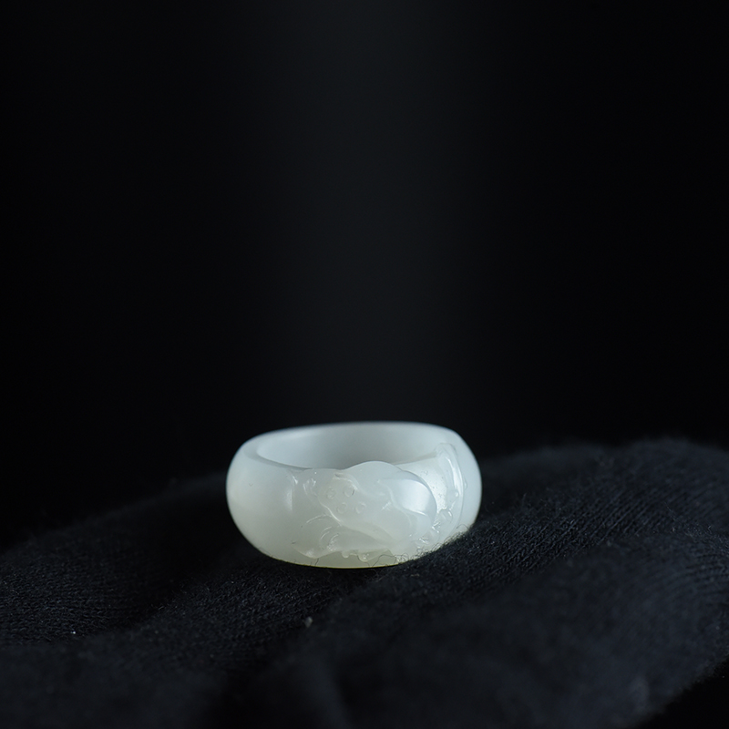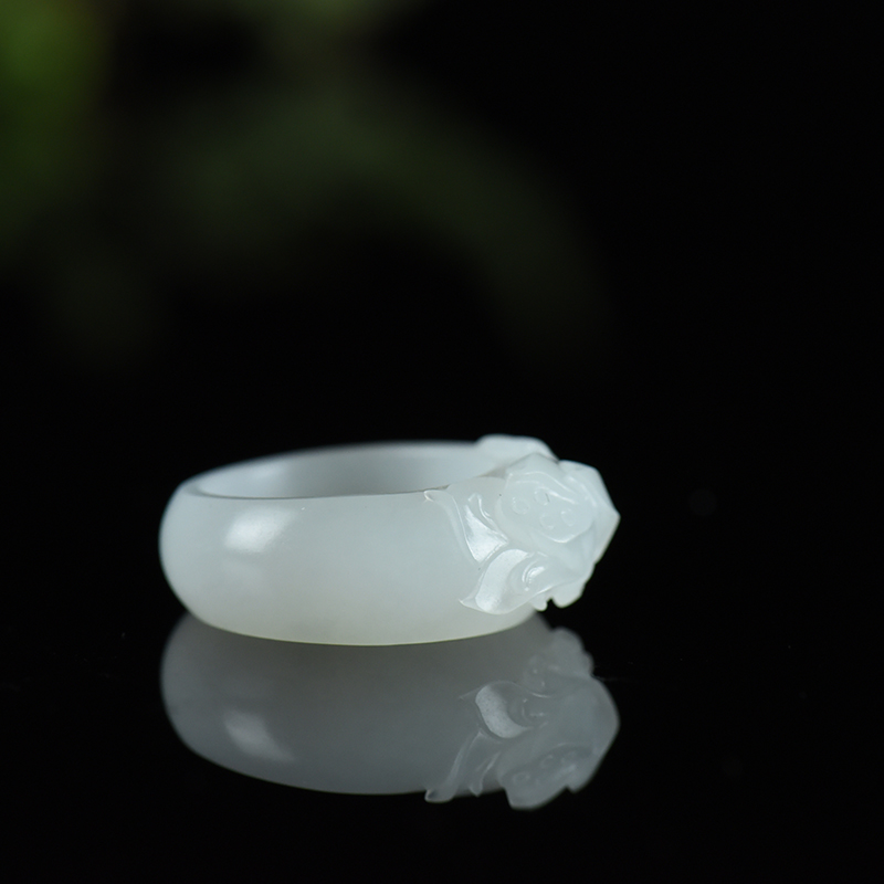 • 籽料和田白玉荷韵指环