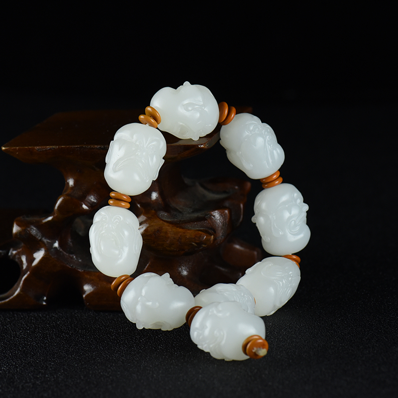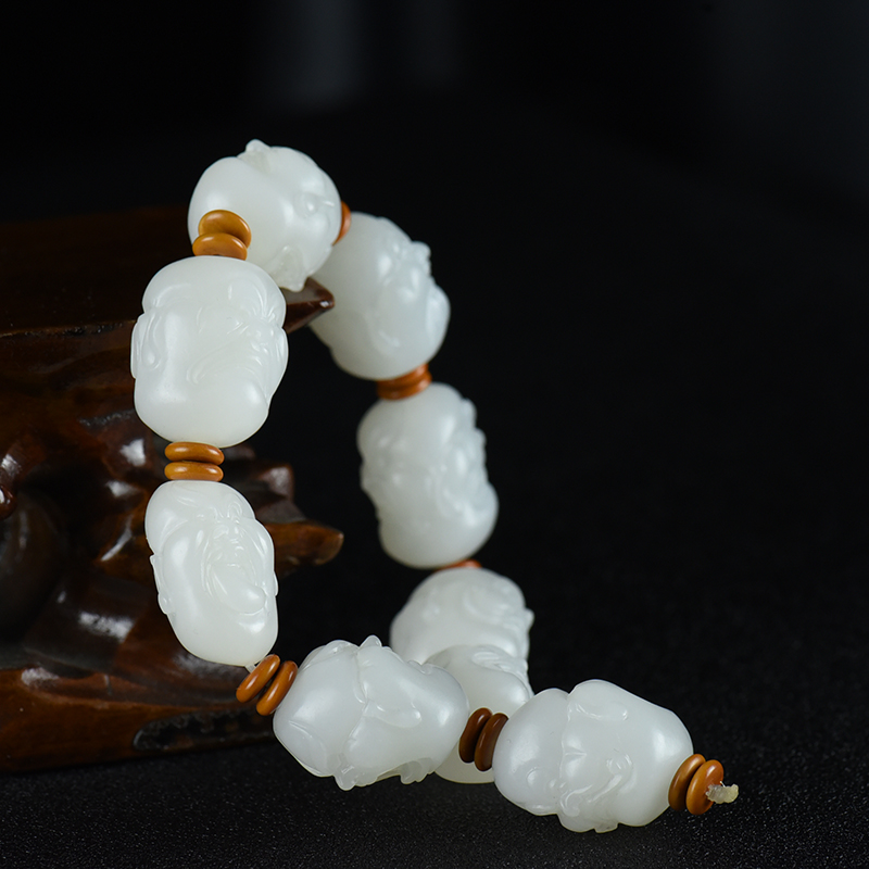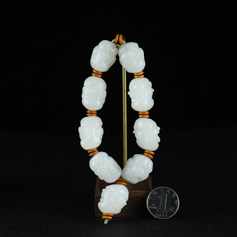 • 山流水料和田羊脂白玉十八罗汉单圈手串
