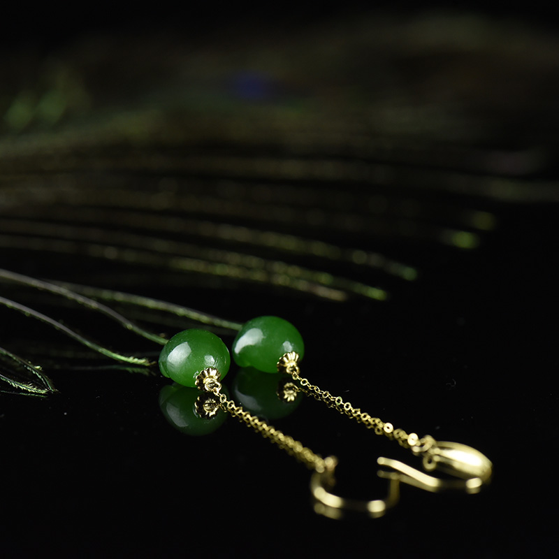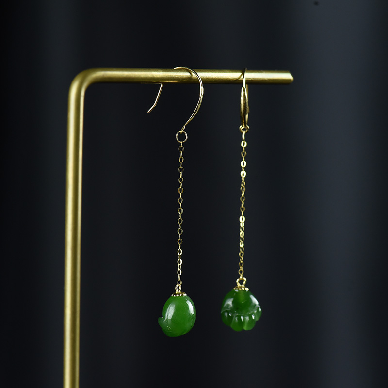 • [名  称] 18K山料和田碧玉猫爪耳坠