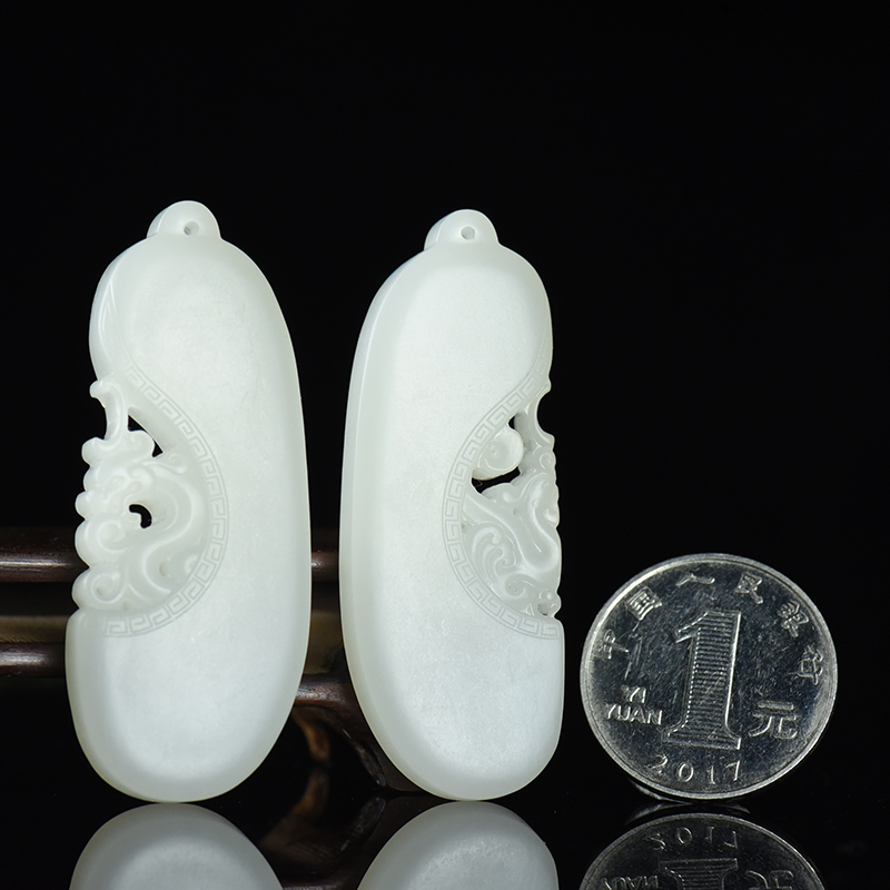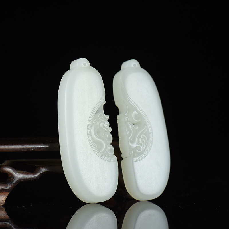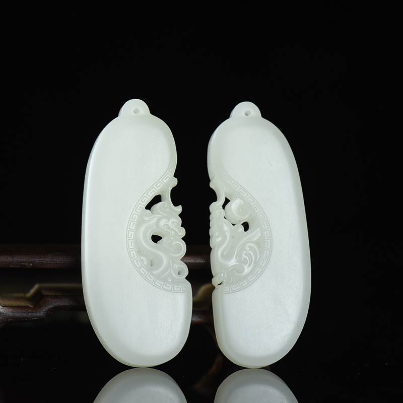 • [名  称] 山料和田羊脂白玉龙凤对牌吊坠(二件)