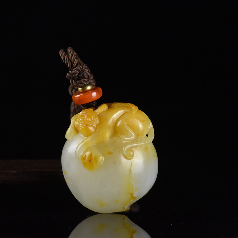 • [名  称] 籽料和田白玉灵猴献寿吊坠